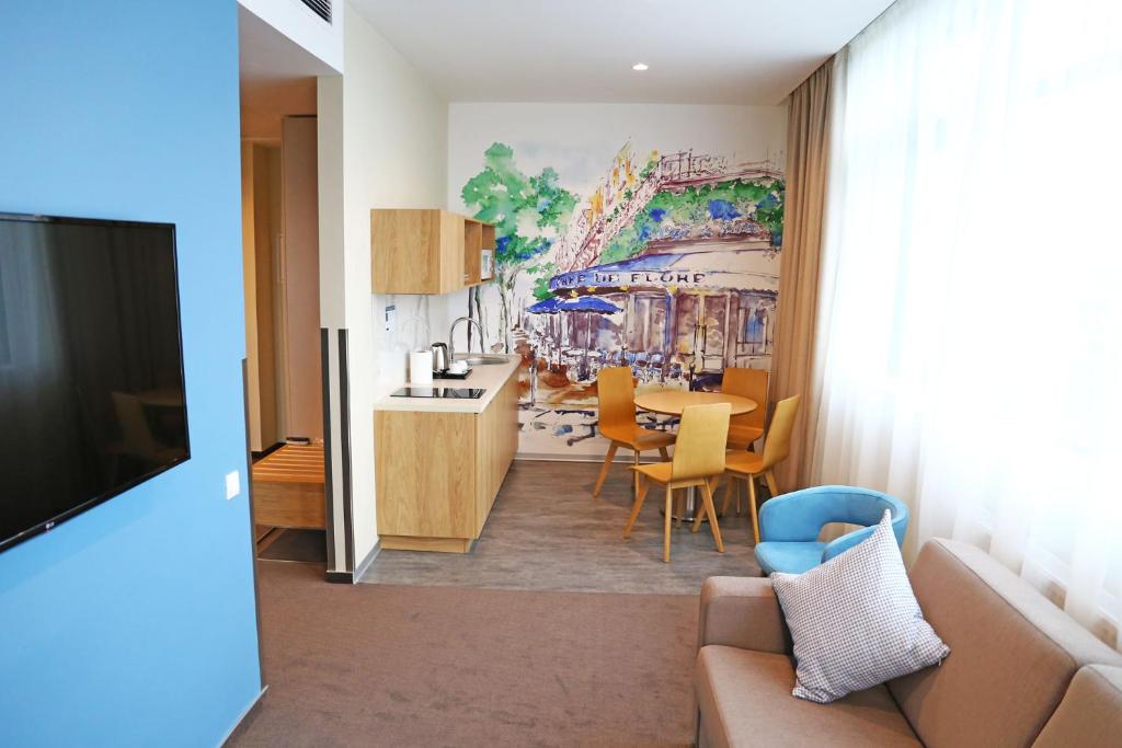В этом отеле идеально все! прекрасное расположение - находится в самом центре, и уходя от отеля в разные стороны, можно попасть в разные достопримечательности, очень удобно! в номере есть все - до самых мелочей, и щетка доя одежды и для обуви , и бритвенный станок, зубная паста со щеткой, ну все есть, прекрасное впечатление складывается именно из таких мелочей! удобнейшая кровать, большая, подушки на любой вкус! если ещё приедем в Калининград, останавливаться будем только здесь.