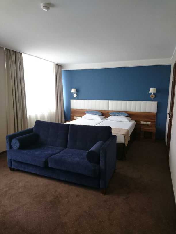 Отличная гостиница, очень понравилась, номер большой, ванная чистая современная. Удаление от центра и достопримечательностей легко компенсируется такси, цена которого 80-100 рублей. Рядом есть остановка "Сельва", где за 50 руб на ласточке можно доехать до Светлогорска, потом за 60 рублей до Зеленоградска и потом оттуда можно на ласточке вернуться в сам Калининград.