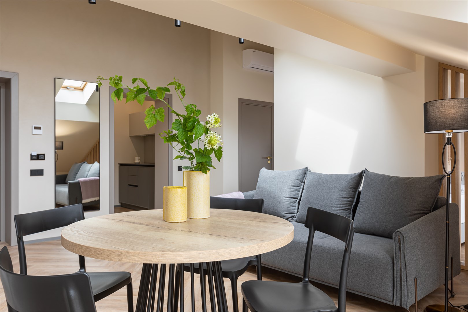 вешалка, диван, зеркало, кресла, кровать двуспальная, прикроватные тумбочки, стол, столик журнальный, стулья, тумба, шкаф