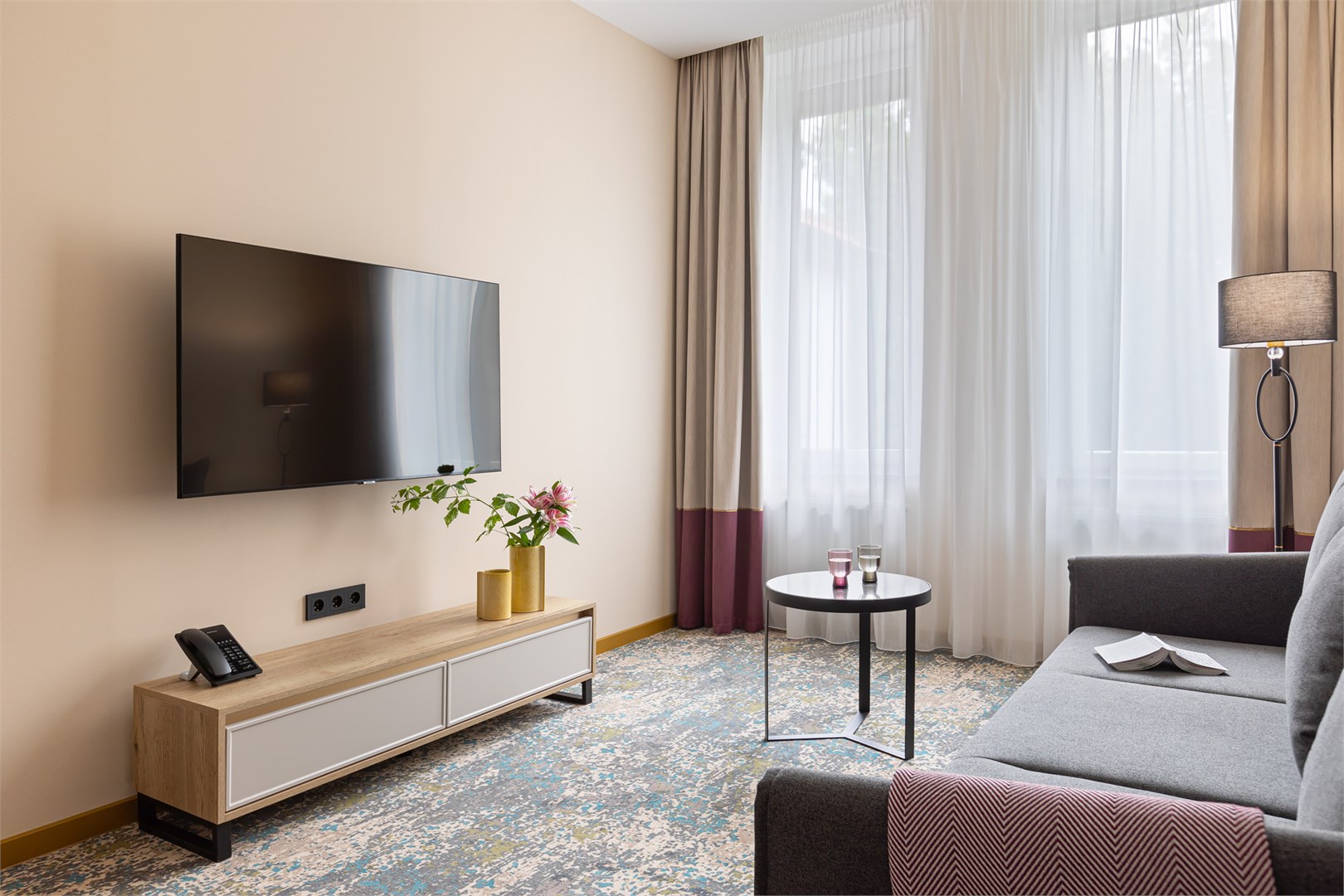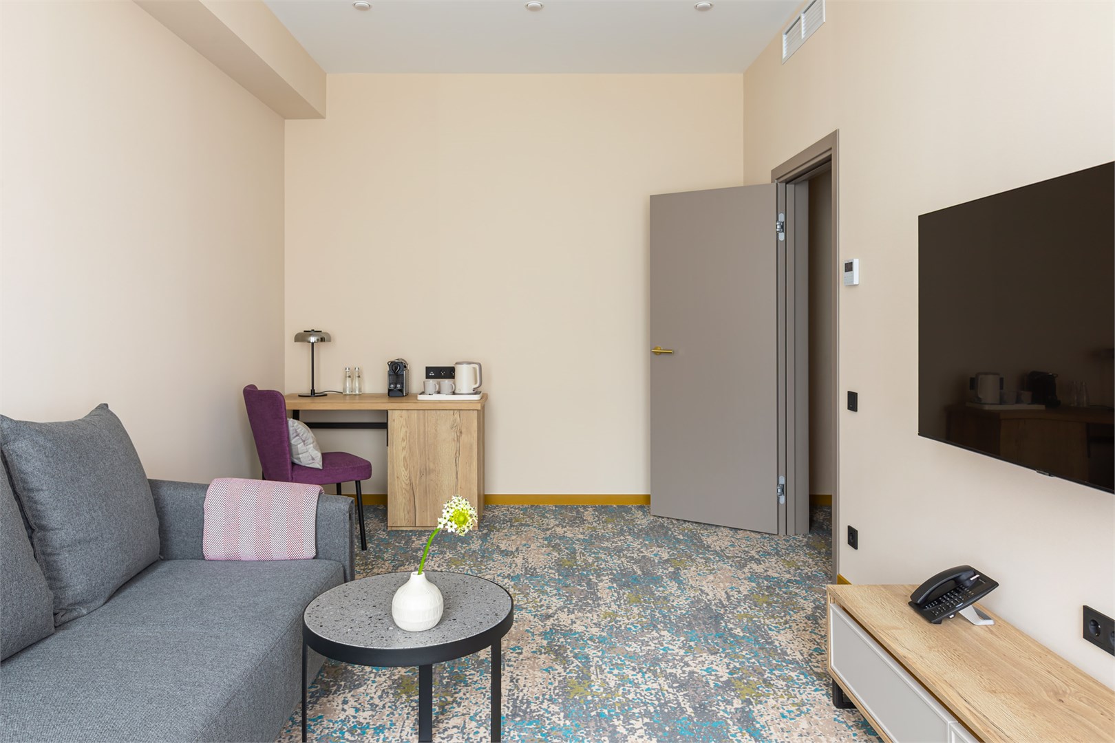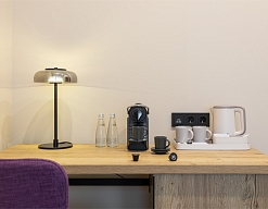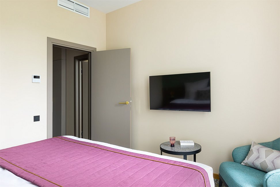 гладильная доска, кофемашина, мини-холодильник, сейф, система общего кондиционирования, телевизор ЖК, телефон, теплый пол, утюг, чайный набор посуды, электрочайник
