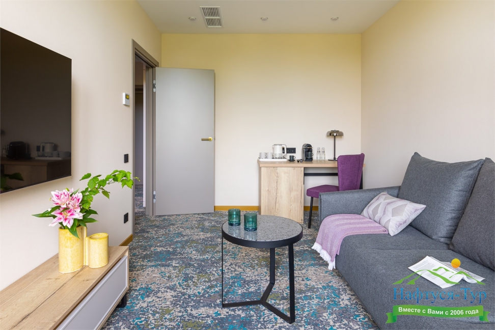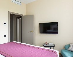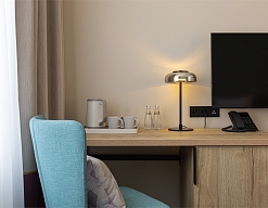 гладильная доска, мини-холодильник, сейф, система общего кондиционирования, телевизор ЖК, телефон, теплый пол, утюг, чайный набор посуды, электрочайник