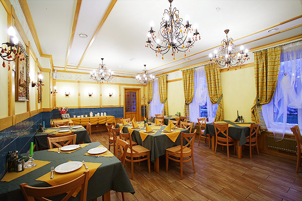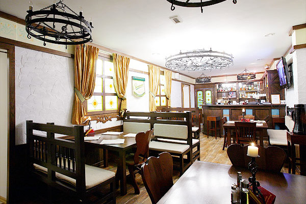 В него входит бар, оформленный в стиле настоящего немецкого гоштедта, лобби-бар и 2 ресторанных зала на 60 и 20 посадочных мест, во внутреннем дворике гостиницы расположена открытая терраса.