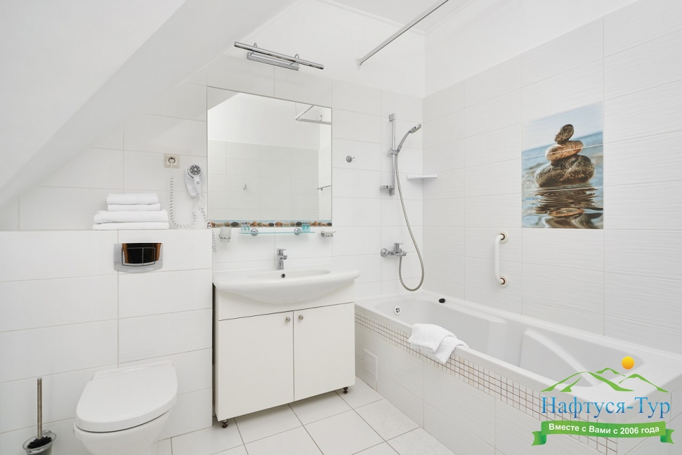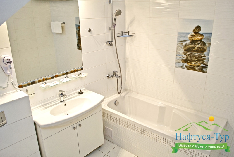 с ванной, туалетные принадлежности, фен