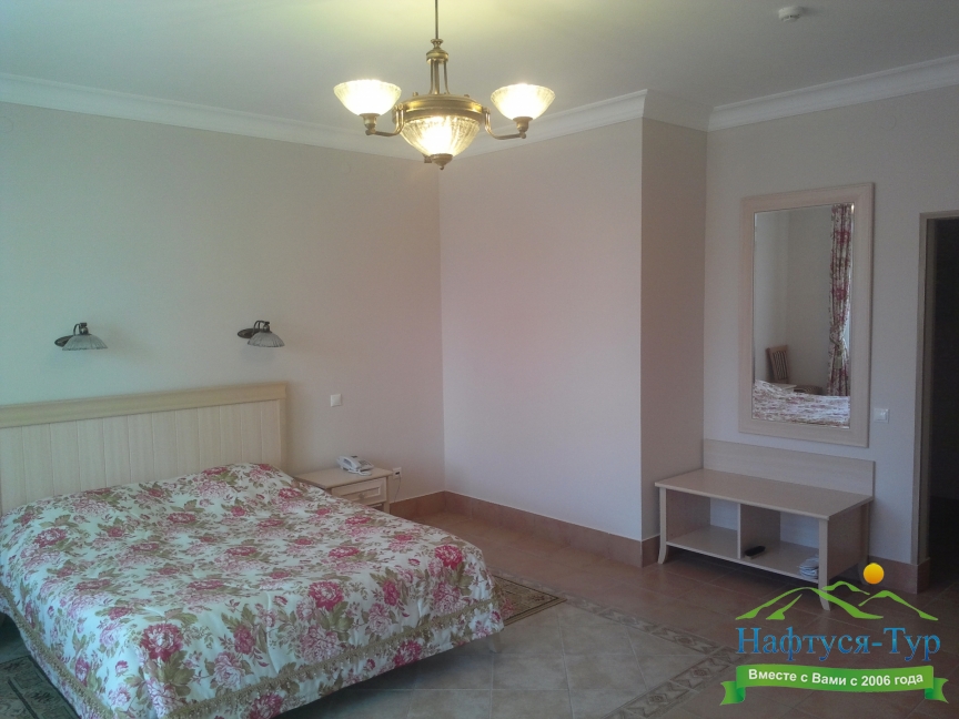 диван раскладной, зеркало, кресло, кровати односпальные /одна двуспальная кровать, прикроватные тумбочки, столик журнальный, тумба багажная, шкаф