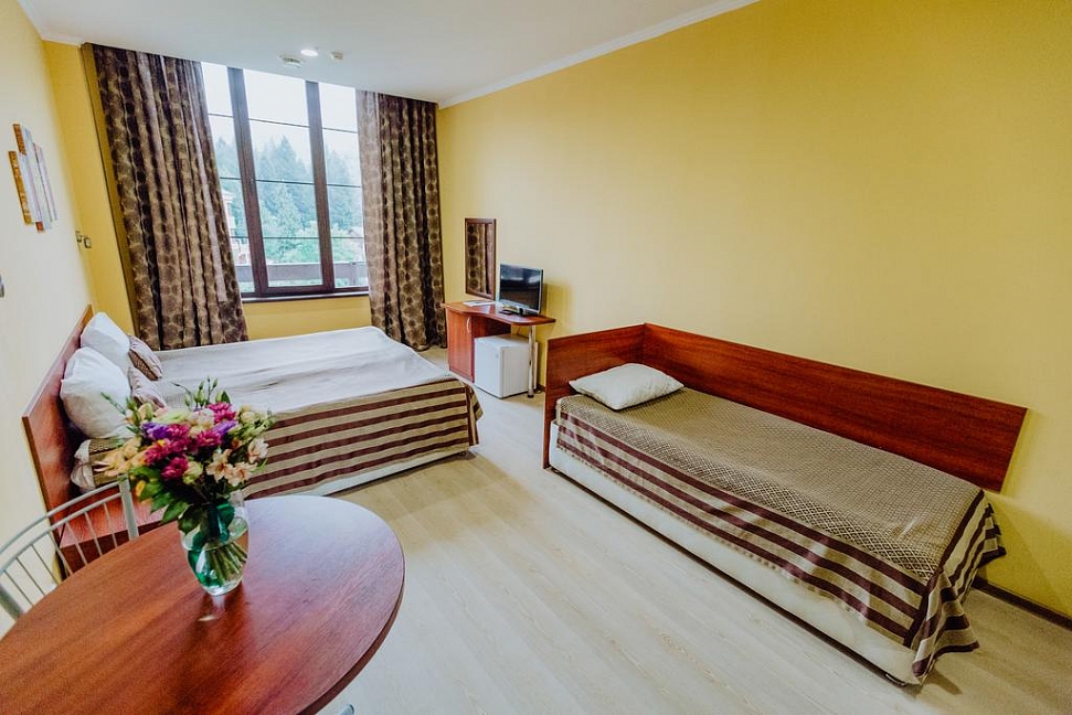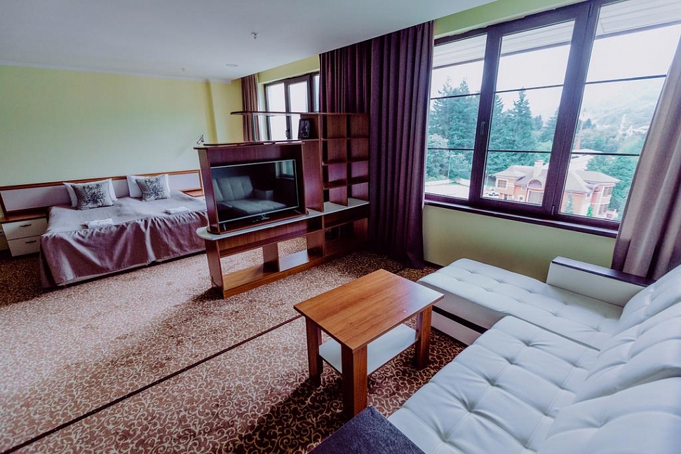 Начну с месторасположения: в красивейшем месте, удобный подъезд на машине, остановка напротив отеля в сторону сочи и Адлера, и 1 мин пешком в сторону роза хутор.
