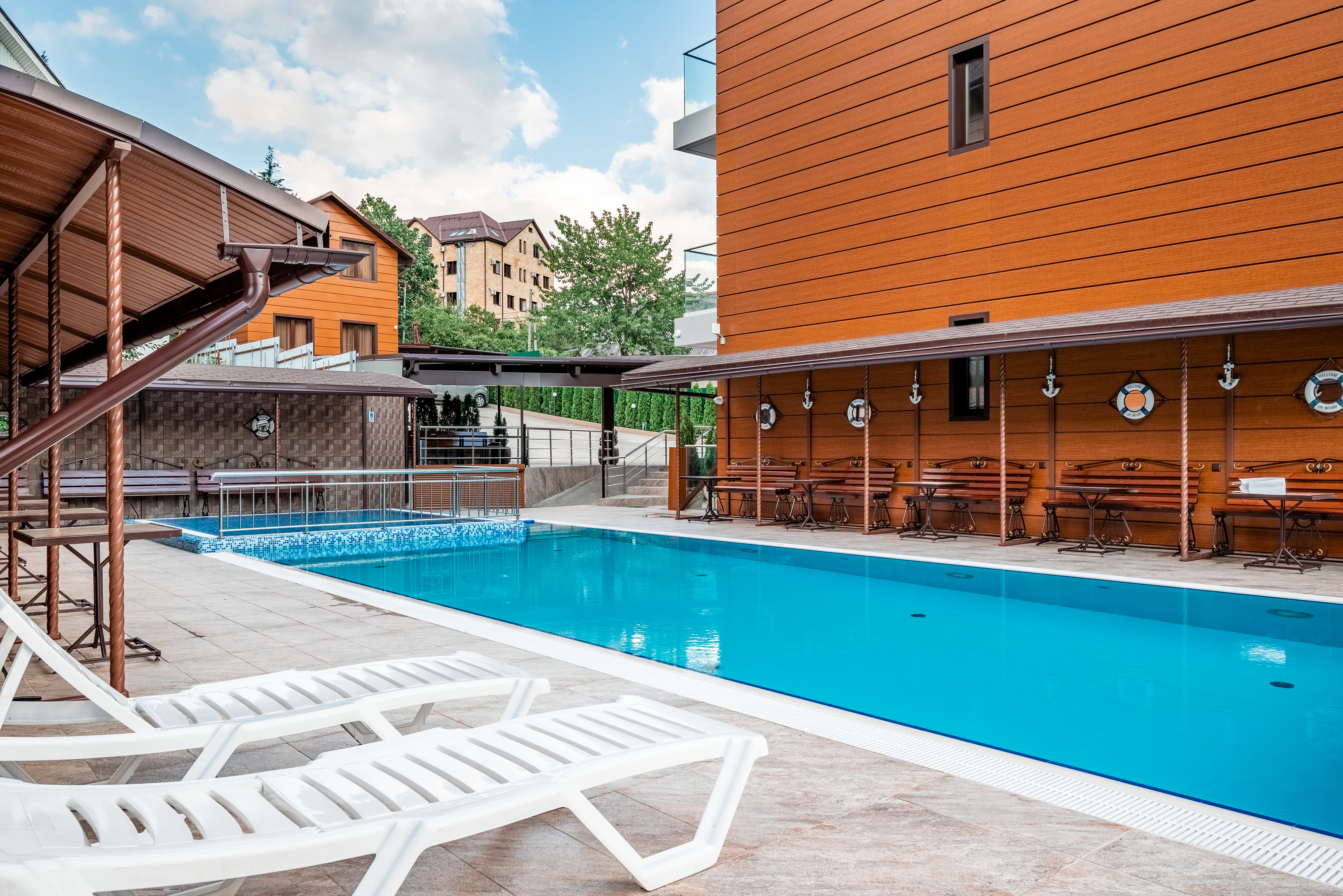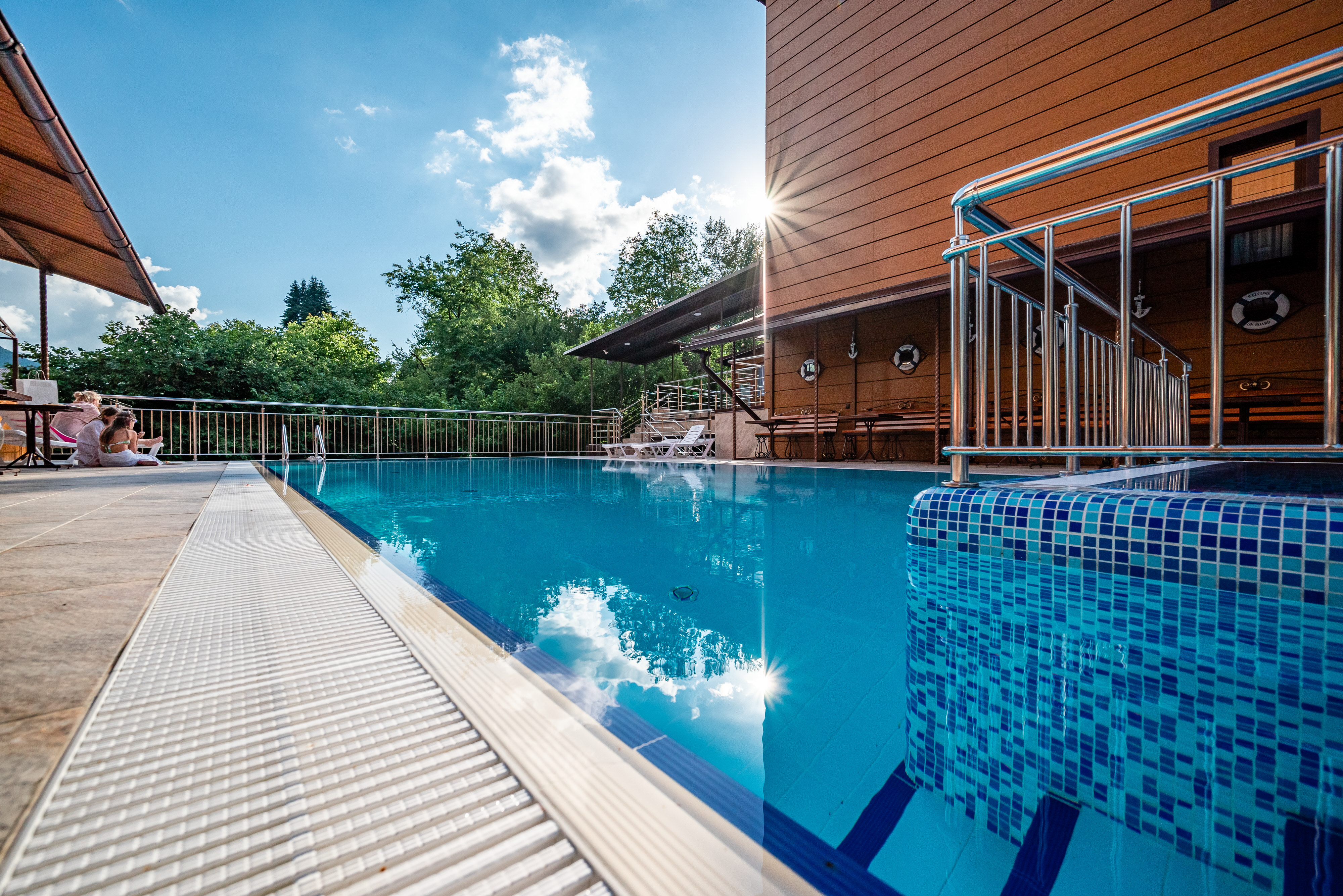 Новый – уютный трехзвездочный отель на 42 номера. Для гостей отеля бесплатно доступен тёплый подогреваемый до 30℃ бассейн. Вкусная сытная еда ресторана, финская сауна и русский бильярд.