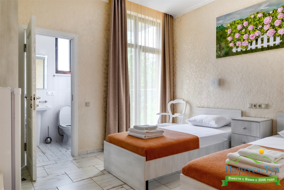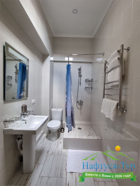 2 санузла, с душем, тапочки, туалетные принадлежности, фен