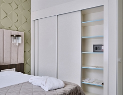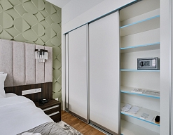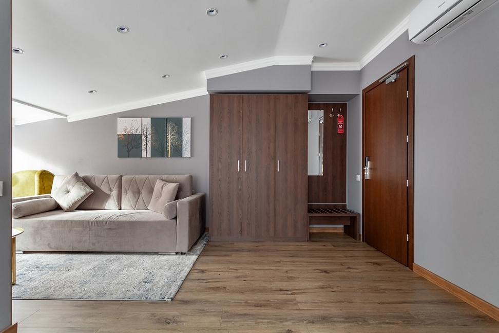 гардеробная, диван, зеркало, кресла, кровати односпальные /одна двуспальная кровать, стулья