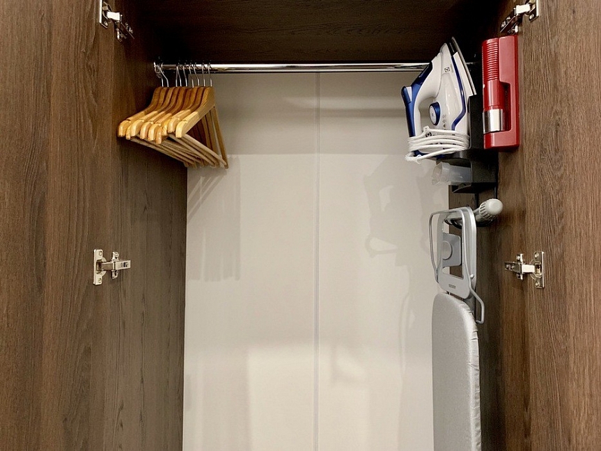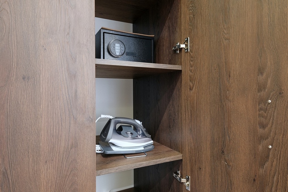 гладильная доска, сейф, сплит-система, телевизор, телефон, утюг, электрочайник