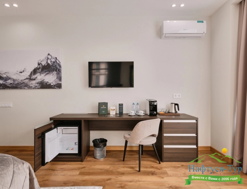 гладильная доска, кондиционер, сейф, телевизор ЖК, телефон, утюг, холодильник, чайный набор посуды, электрочайник