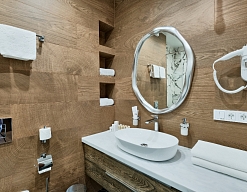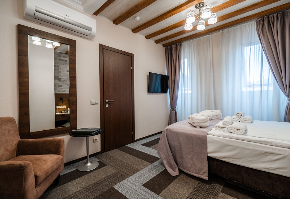 · Чистые и просторные номера. Отличный персонал. Завтрак шикарен!!! Омлет изумительный! Морс из облепихи просто нет слов. Жаль не успели попасть в сауну и бассейн, но уверен, что и там все круто! Душевая просторная.