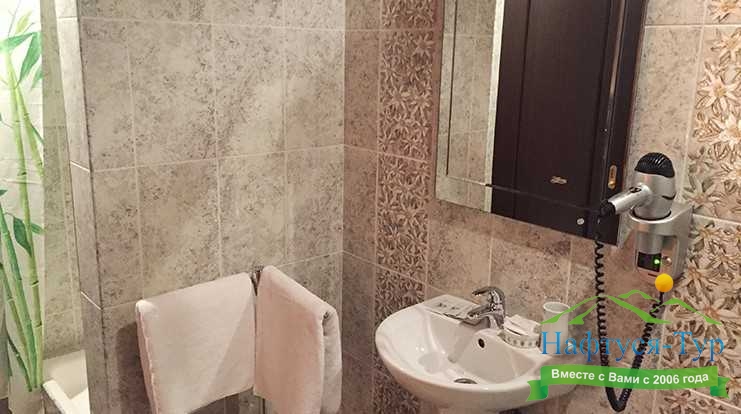 с душем, туалетные принадлежности, фен