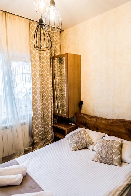 Прекрасный гостевой дом. Чистый уютный номер. Есть всё необходимое. Чистое белоснежное белье, белые халаты, тапочки. Интересный интерьер.
