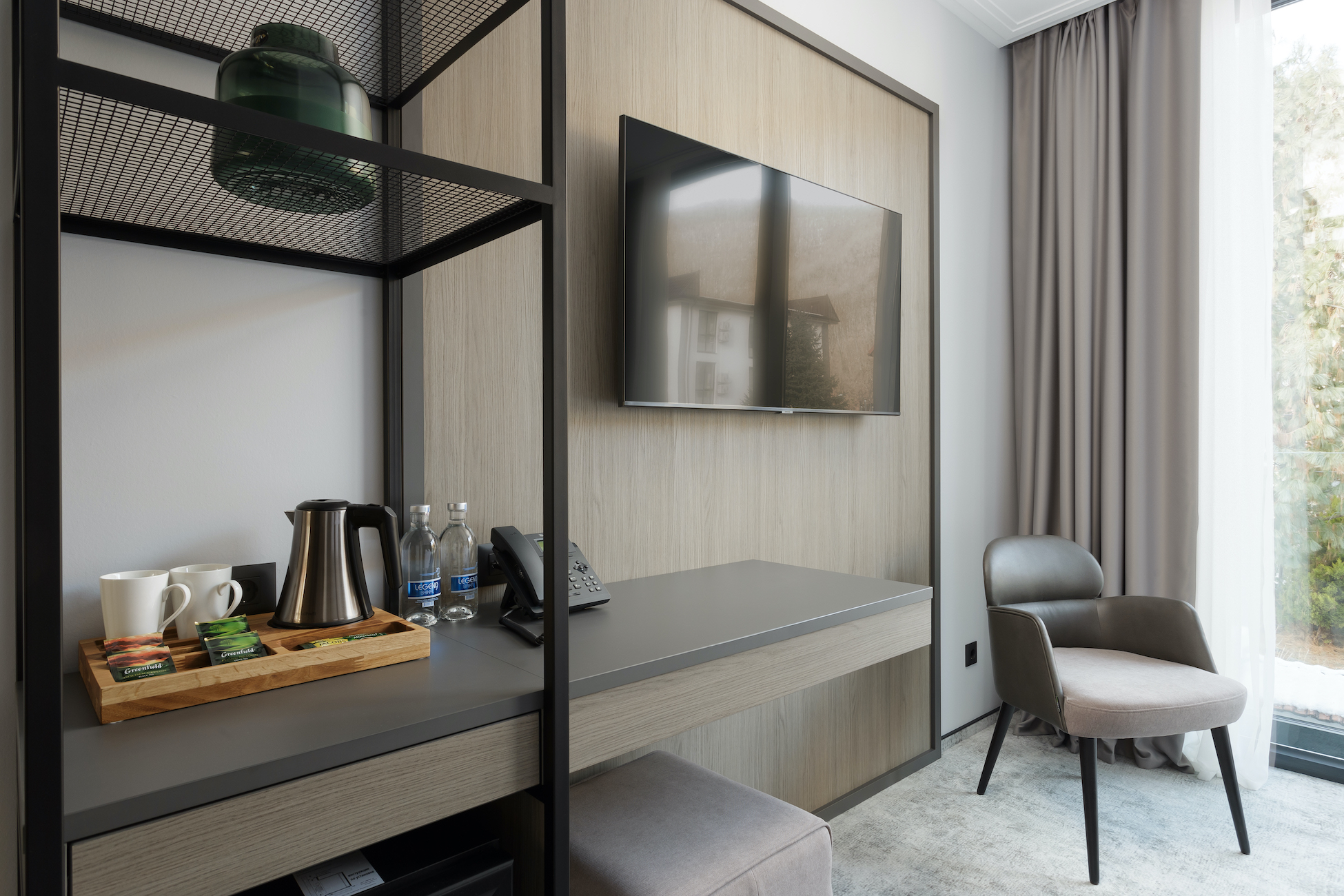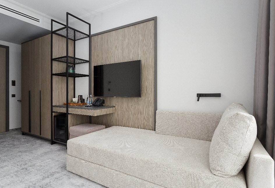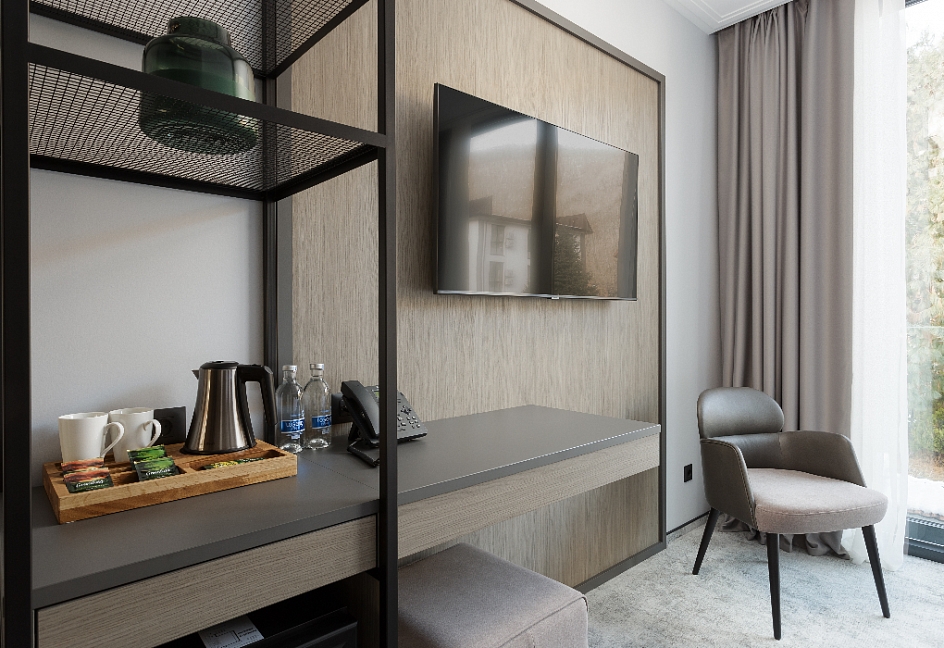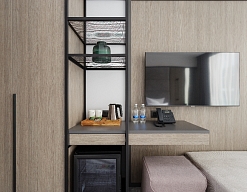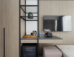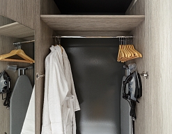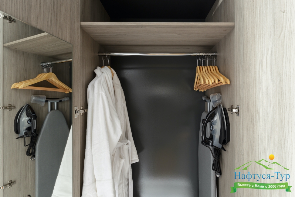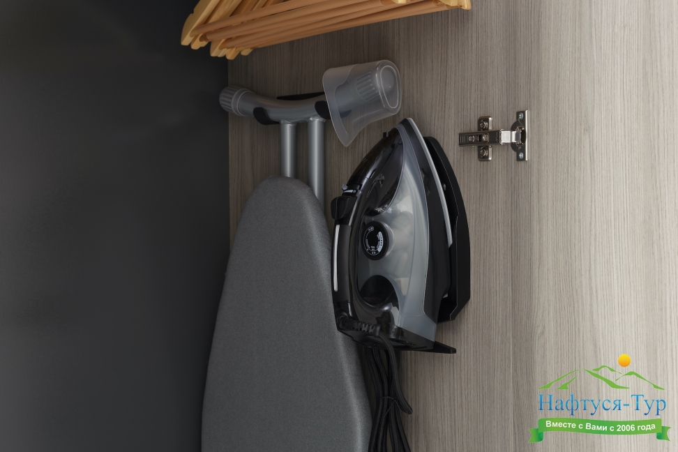 гладильная доска, кондиционер, сейф, телевизор, утюг, холодильник, чайная станция