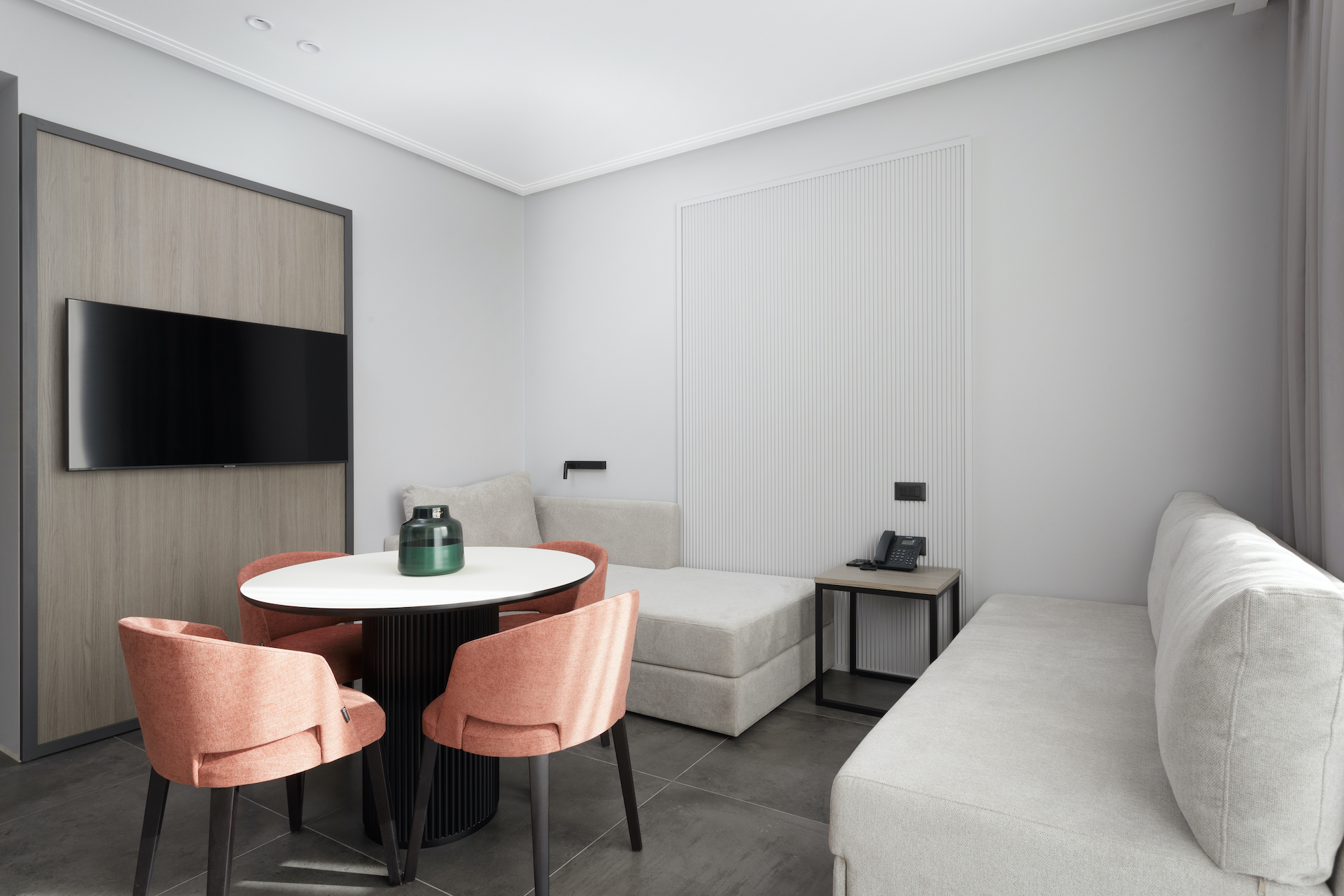 диван раскладной, кровать двуспальная, прикроватный столик, стол, стулья, шкаф