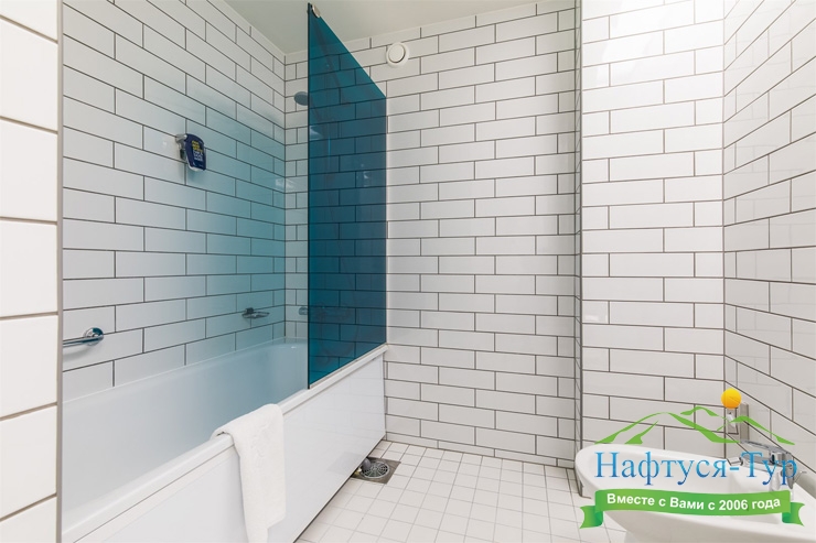 биде, с ванной, тапочки, туалетные принадлежности, фен, халат