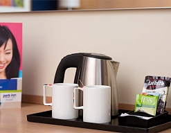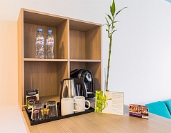 гладильная доска, кофемашина, мини-холодильник, сейф, телевизор, телефон, утюг, чайная станция, чайный набор посуды