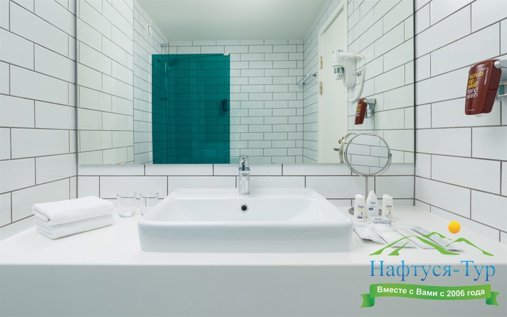 с душем, туалетные принадлежности, фен