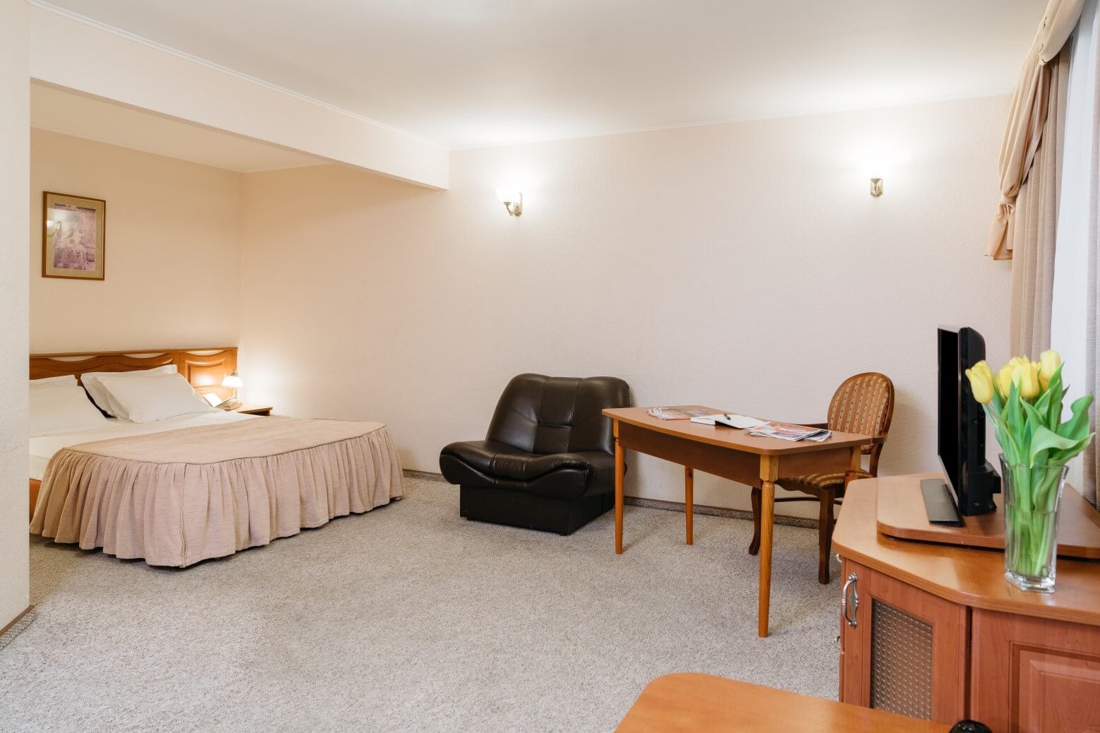кресла, кровать двуспальная, стол, стулья
