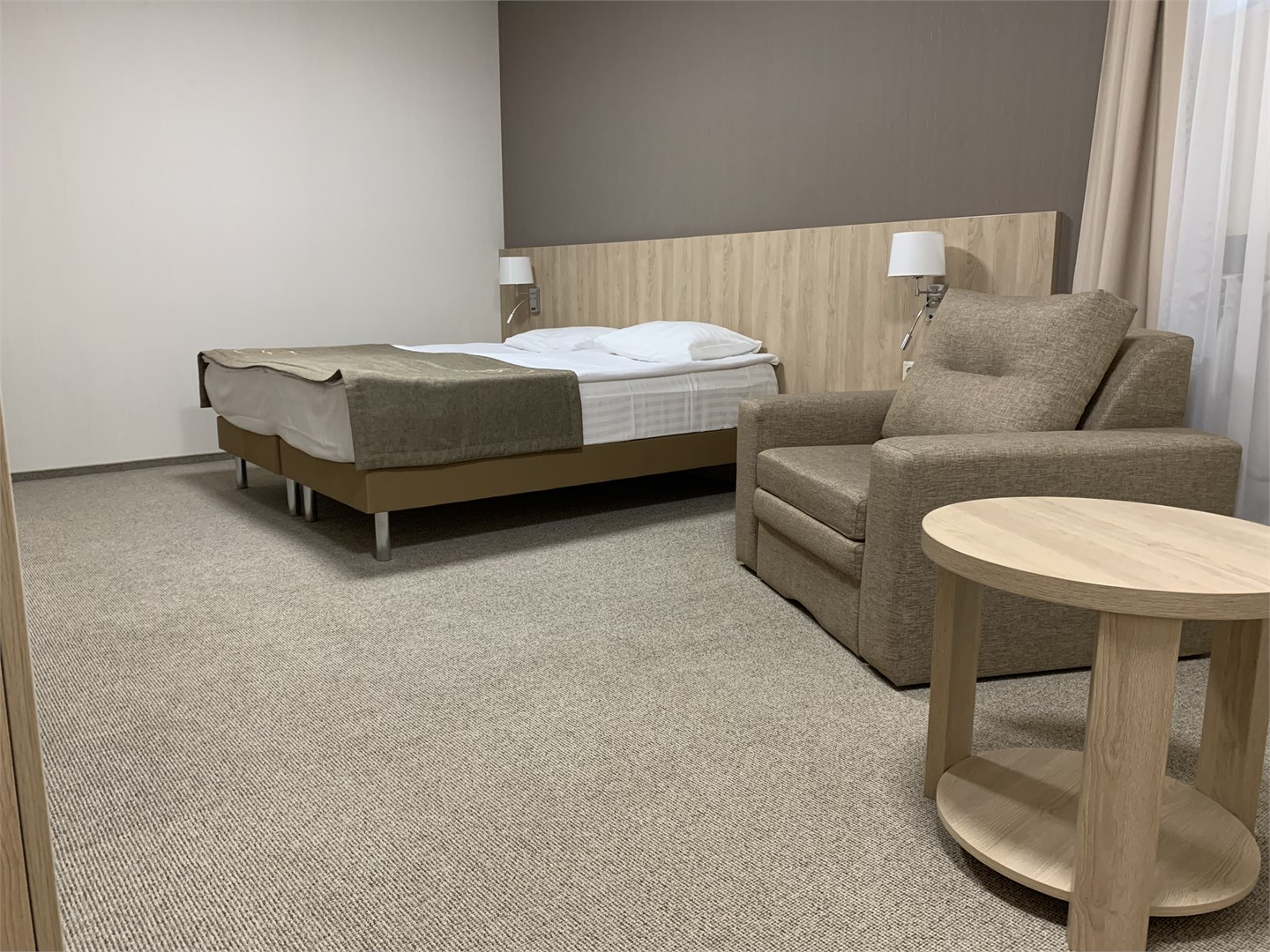кресло-кровать, кровать двуспальная, прикроватная тумбочка, стол, стулья