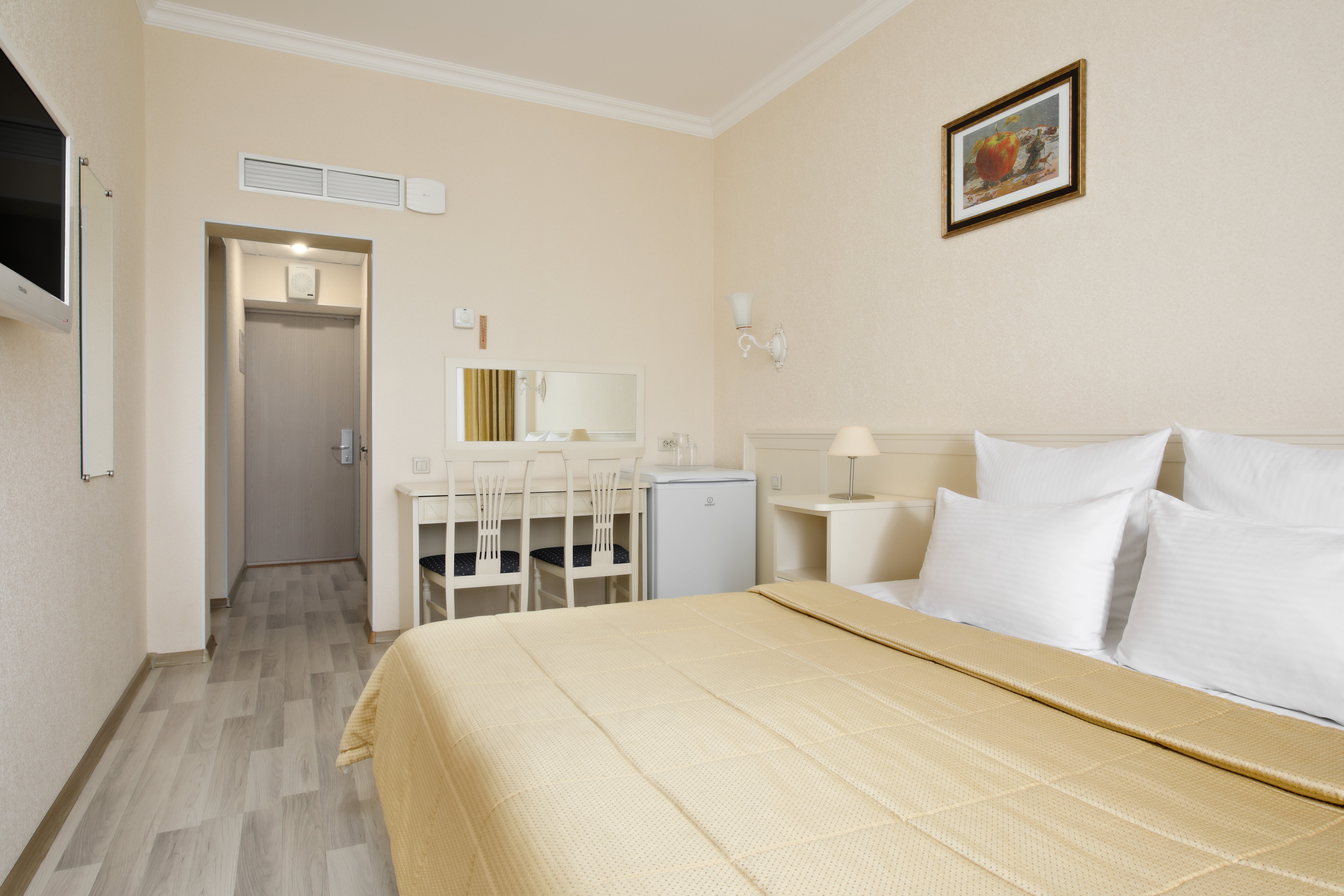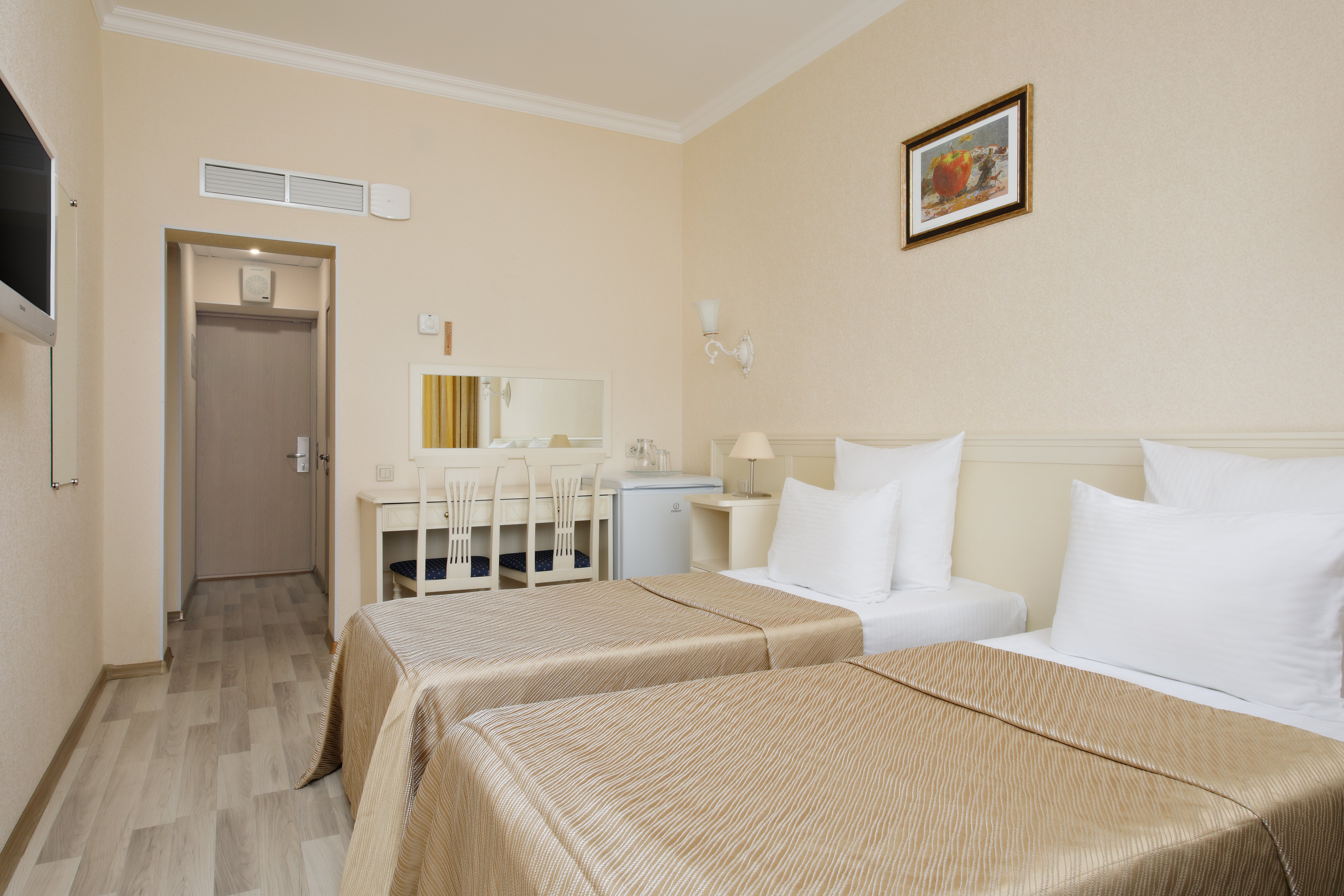 система общего кондиционирования, телевизор, холодильник, чайный набор посуды, электрочайник