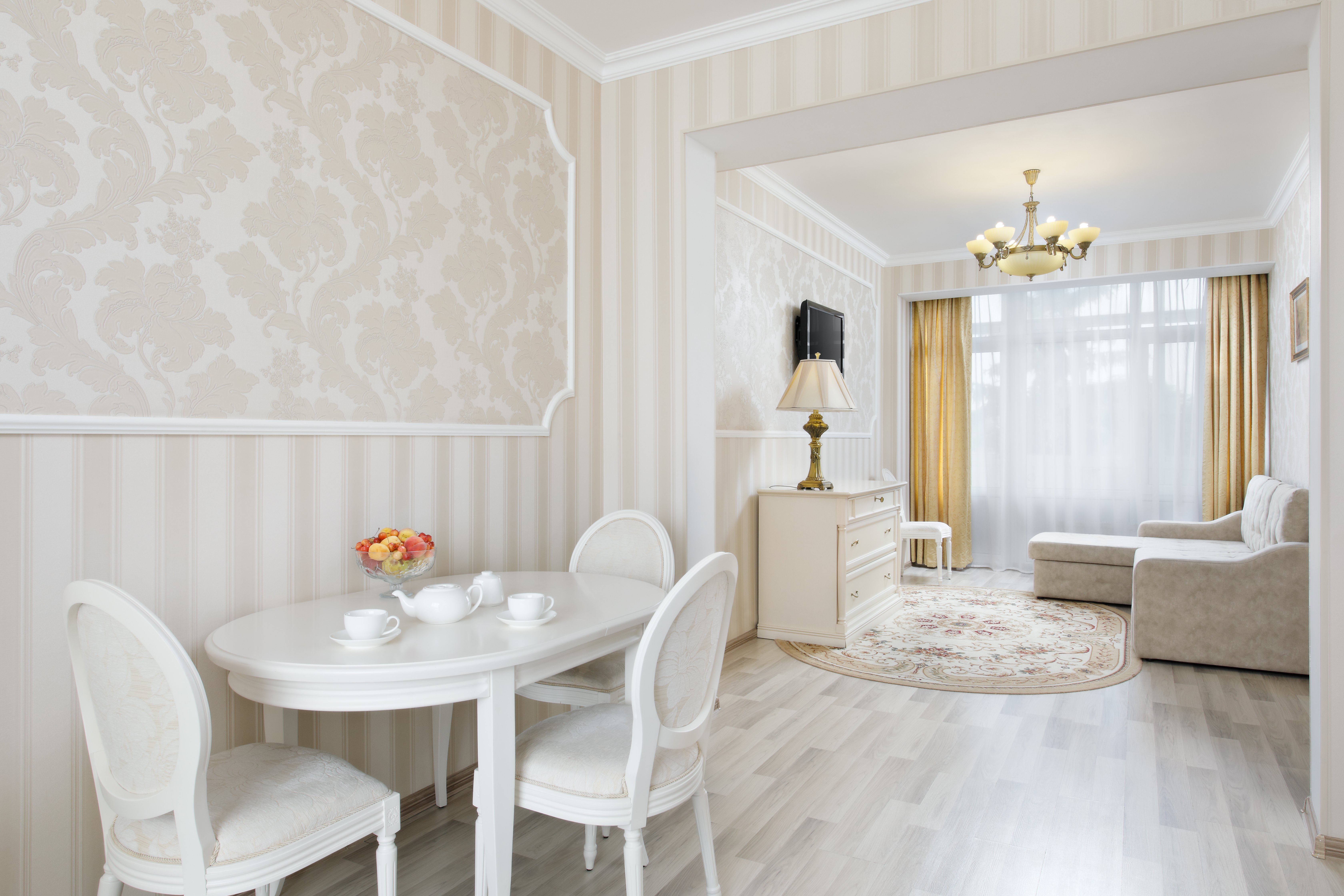 кровать двуспальная, набор мягкой мебели, стол, столик журнальный, стулья, тумба, шкаф