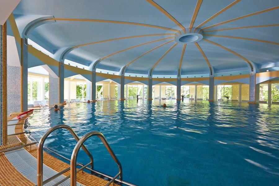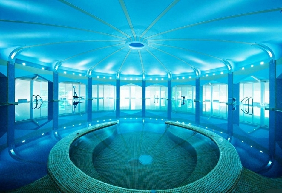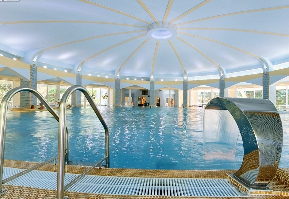 1 крытый бассейн (диаметр 22,5 м, с каскадным душем, гидромассажной установкой и восходящим душем-массажем.