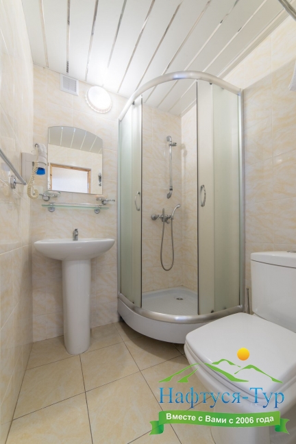 с душевой кабиной, туалетные принадлежности