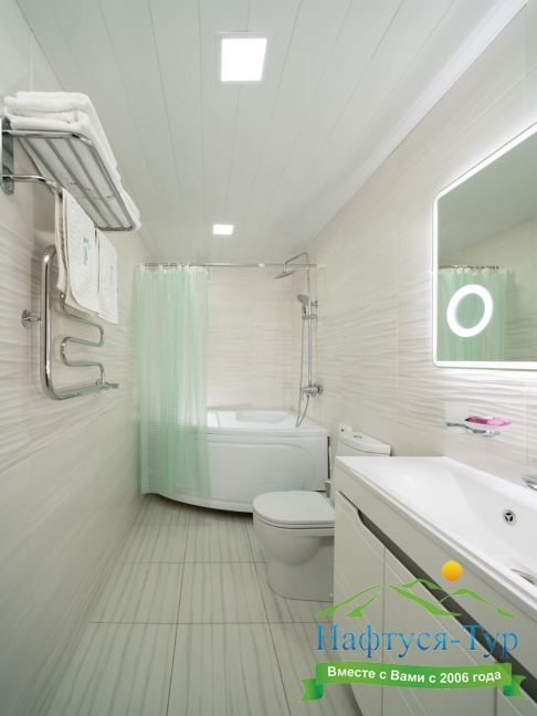 с ванной, с душем или ванной, туалетные принадлежности, фен