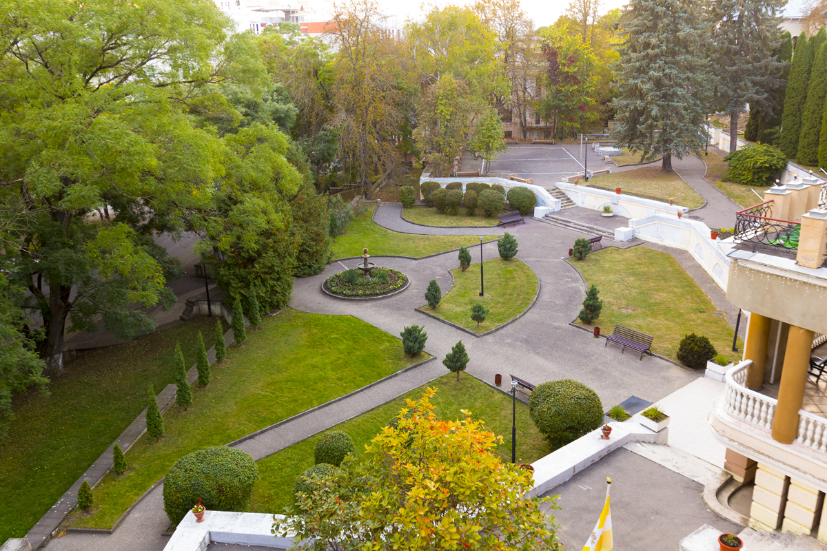 Санаторий МОСКВА Кисловодск, расположен недалеко от курортной зоны города на собственной парковой территории с дорожками терренкура.