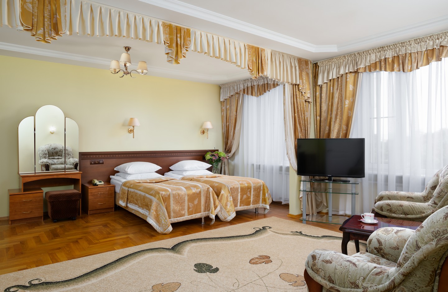 Разнообразие номеров для проживания. Выбирайте из различных категорий номеров – от стандартных до апартаментов. Все номера обеспечивают уют и комфорт для приятного пребывания.