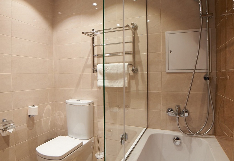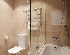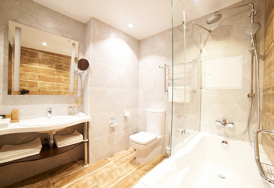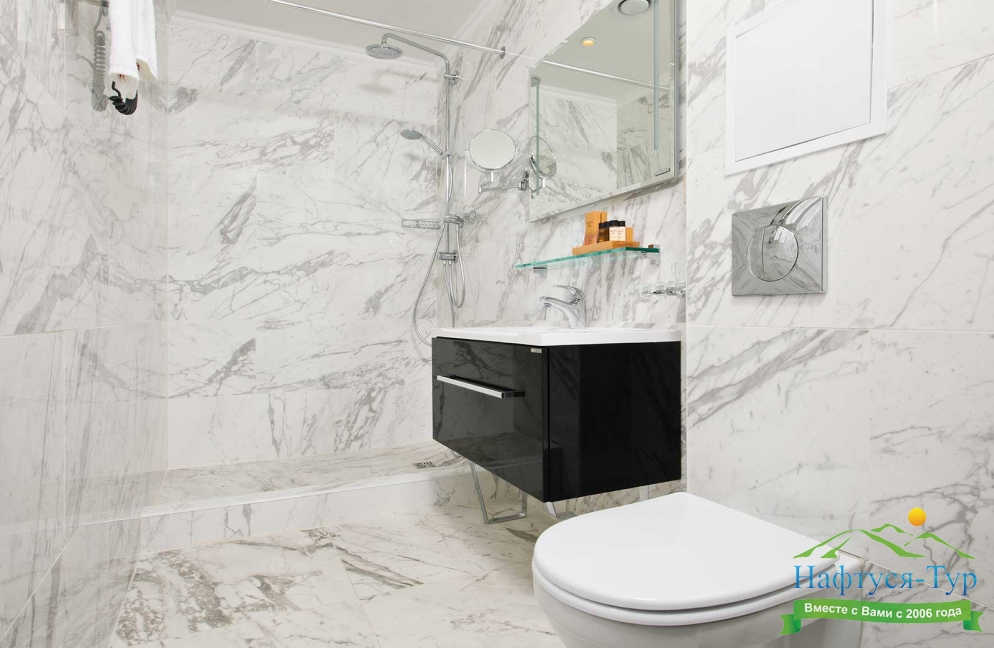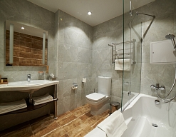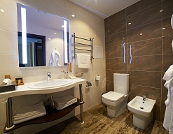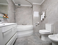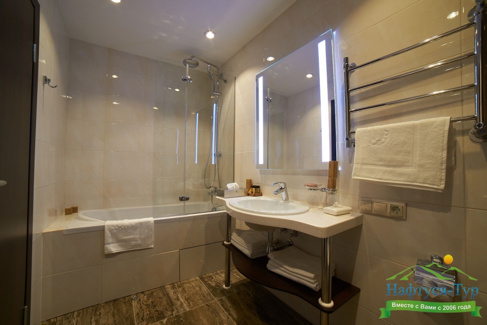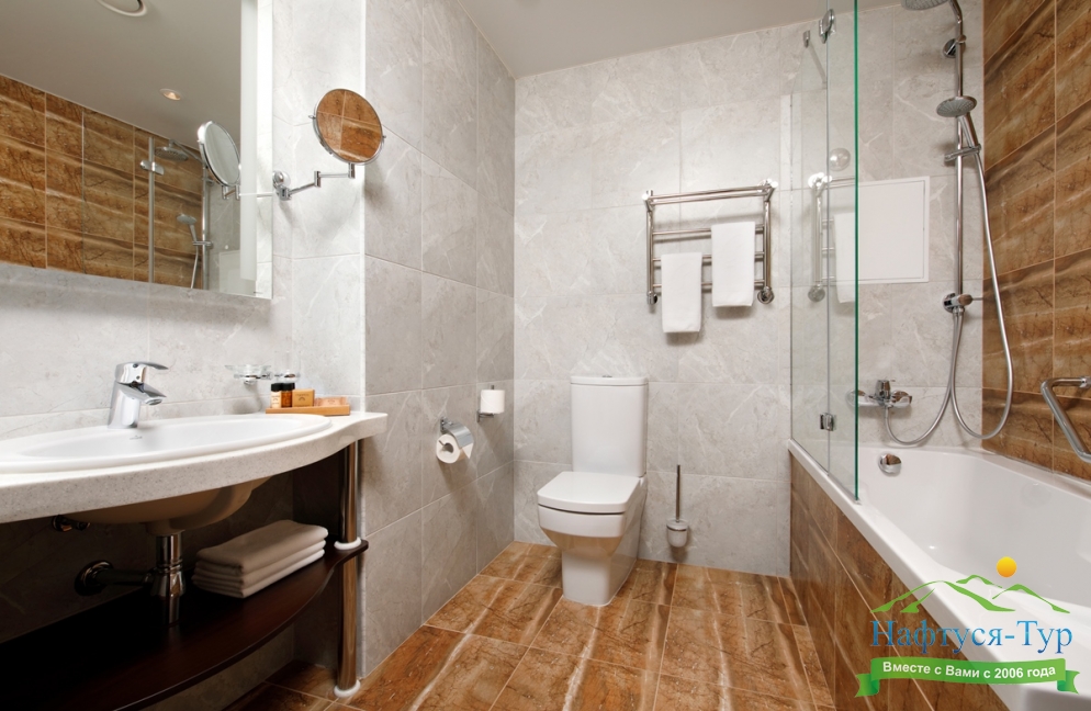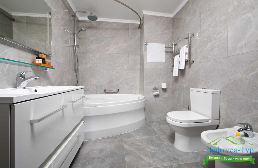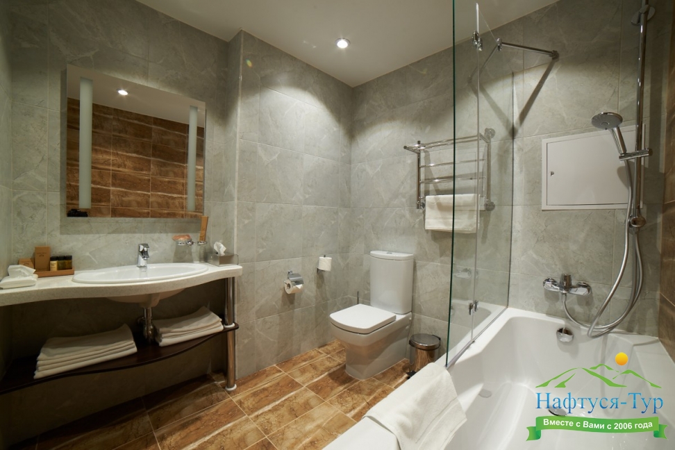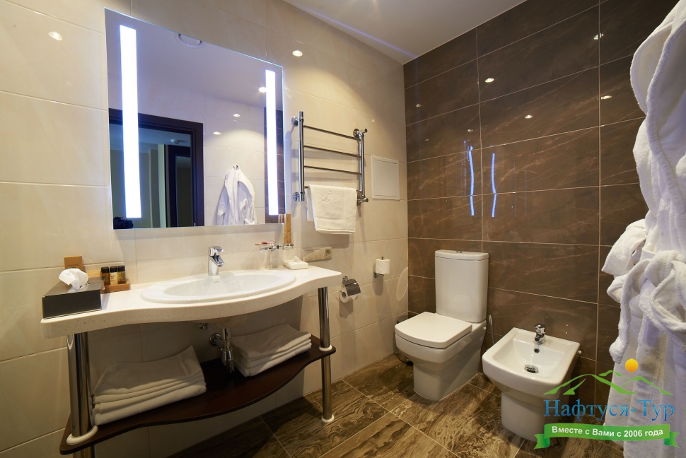 2 санузла, с ванной, с душевой кабиной, тапочки, туалетные принадлежности, фен, халат