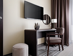 зеркало, кресла, кровать двуспальная, прикроватные тумбочки, стол, столик журнальный, тумба багажная, шкаф-купе