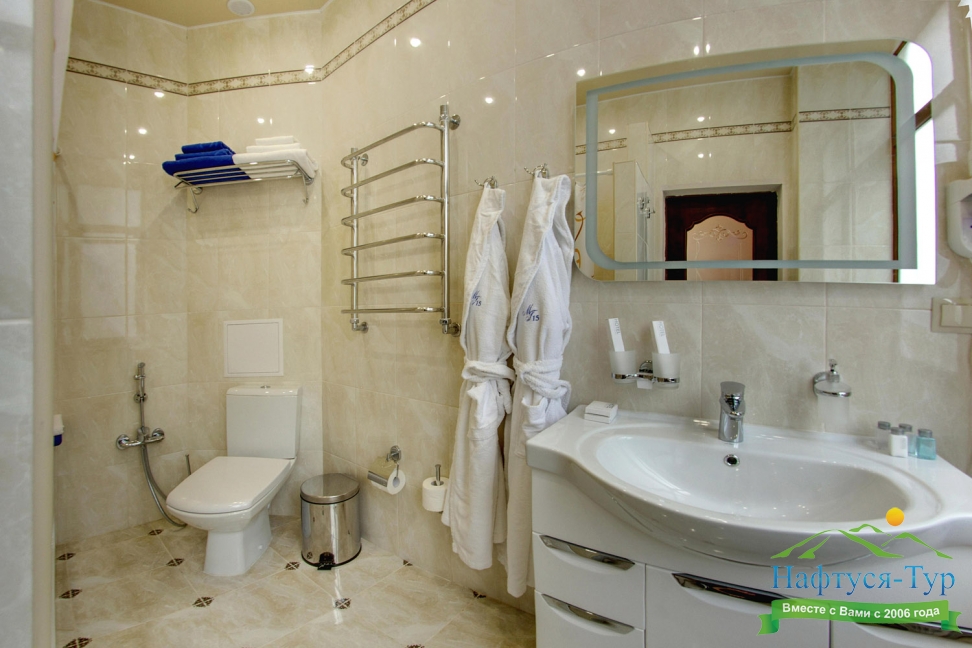биде, с ванной/душ, халат, фен