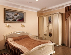 зеркало, кровать двуспальная, прикроватные тумбочки, стол, стулья, шкаф