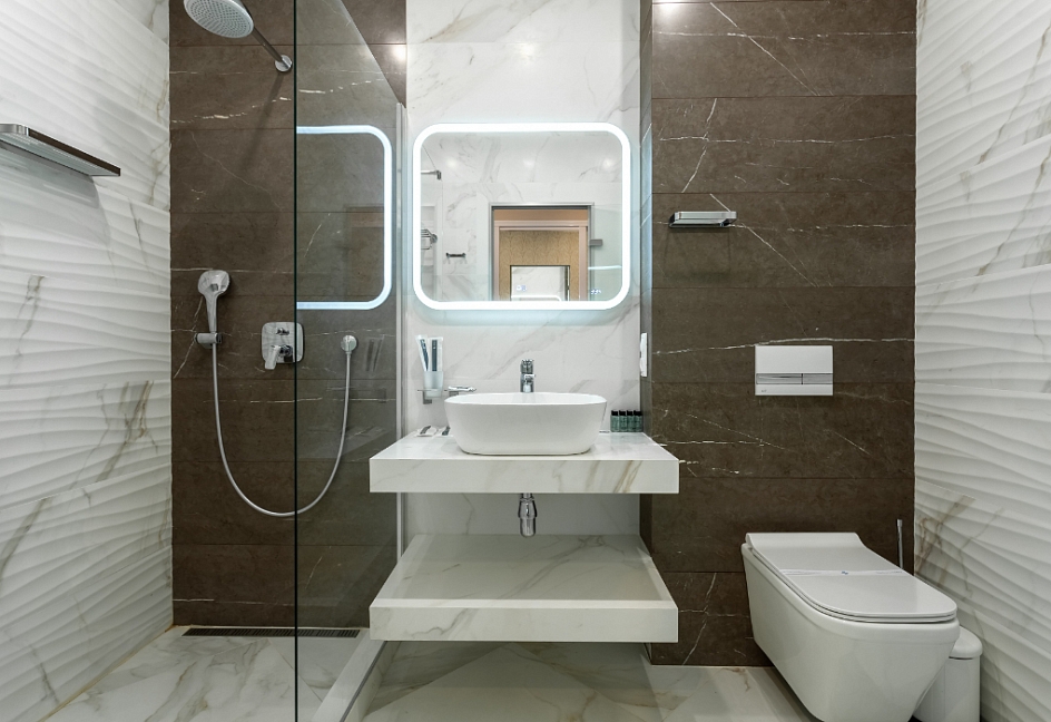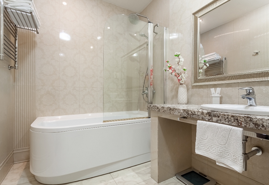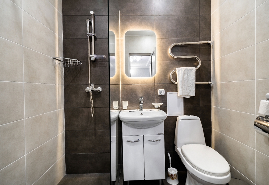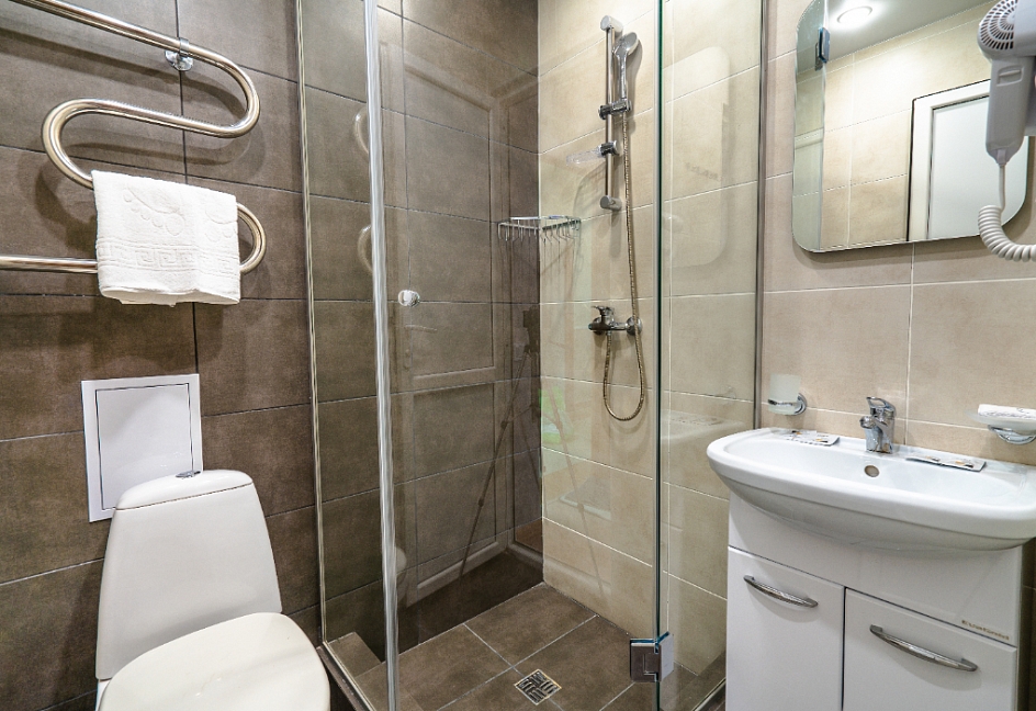 с душевой кабиной, фен