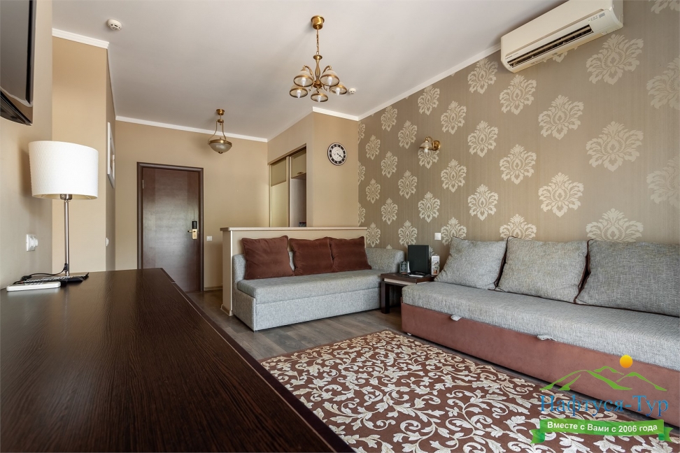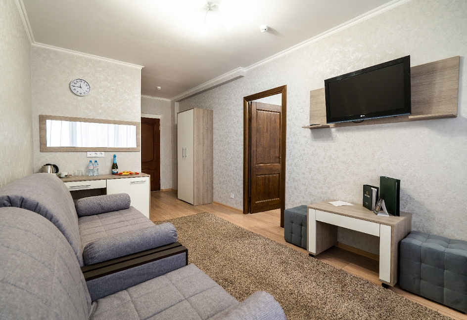 мини-холодильник, набор посуды, сейф, сплит-система, телевизор ЖК, чайная станция, электрочайник