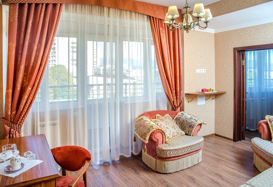 Отдыхаем сейчас в отеле с сыном. Положительные эмоции начинаются с порога - очень приветливый персонал, мгновенное заселение, чистый уютный номер с видом на горы. Порадовало месторасположение - буквально в пяти минутах хотьбы от пляжа, в шаговой доступности Адлерский рынок, ТЦ Мандарин, Магнит, аптека, банки, отличная транспортная развязка, до аэропорта, как и до культовых олимпийских объектов буквально 15-20 минут езды на автобусе.