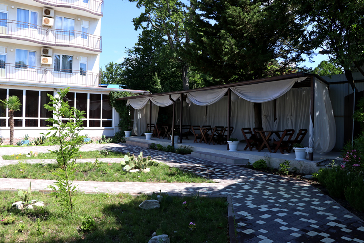 Гостиница находится в поселке Агой, Туапсинского района. Пятиэтажный корпус оформлен элементами древнегреческих мотивов. Нижний этаж занимает просторный вестибюль, стойка регистрации, кафе-столовая и уютный бар. Номерной фонд гостиницы насчитывает 26 номеров категории «стандарт», один номер «люкс». Гостям предоставляется трехразовое питание. На территории имеется охраняемая бесплатная автостоянка. При необходимости, отдыхающие могут посетить продуктовый магазин или сувенирную лавку, которые находятся на территории отеля.
