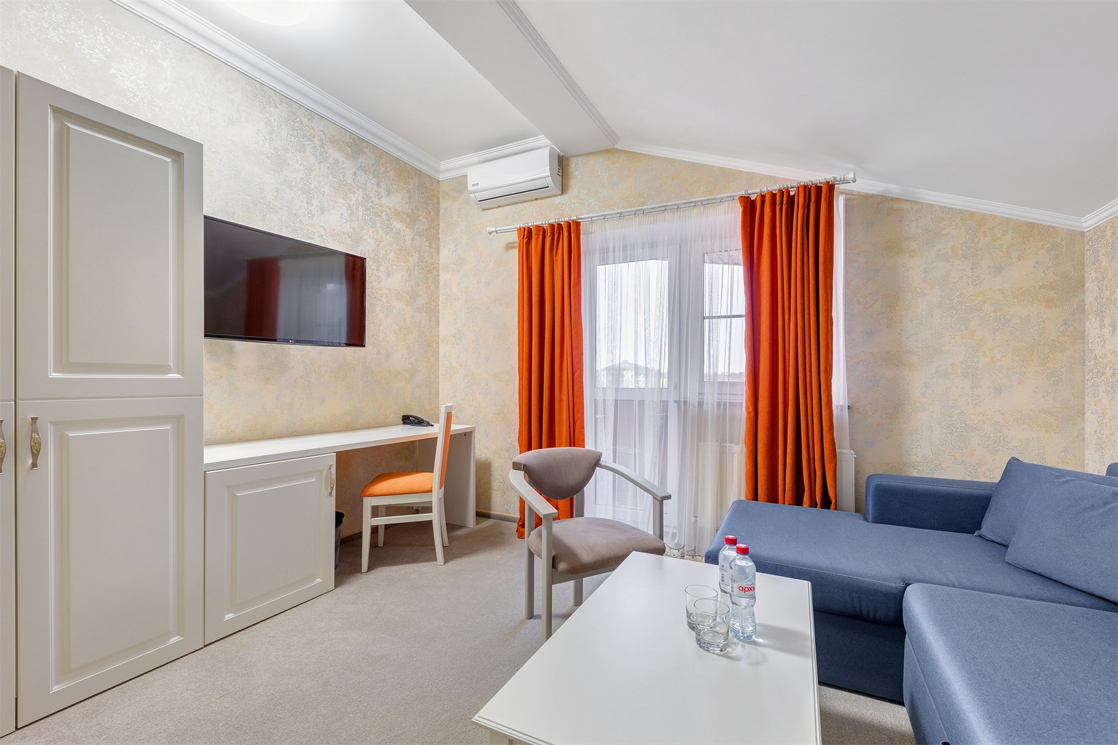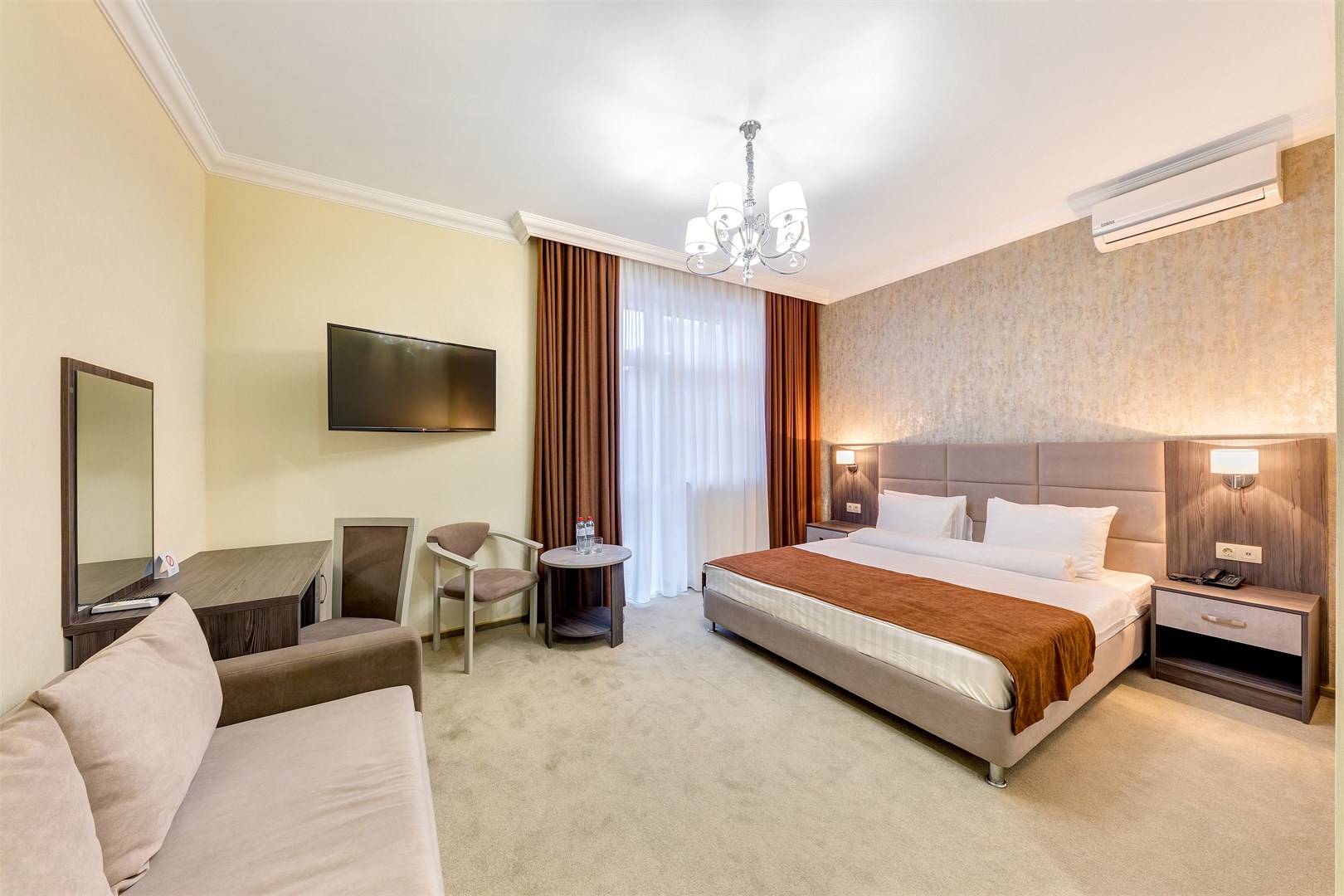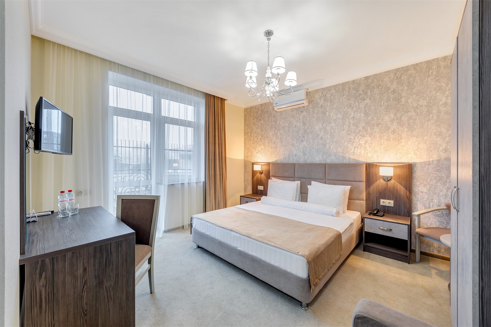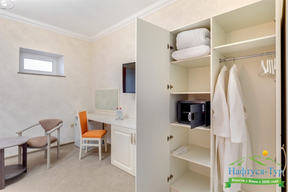 мини-холодильник, сейф, сплит-система, телевизор, телефон, чайная станция