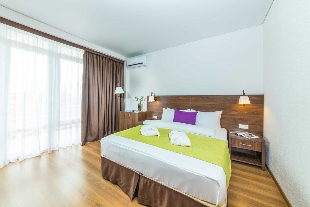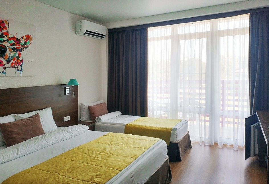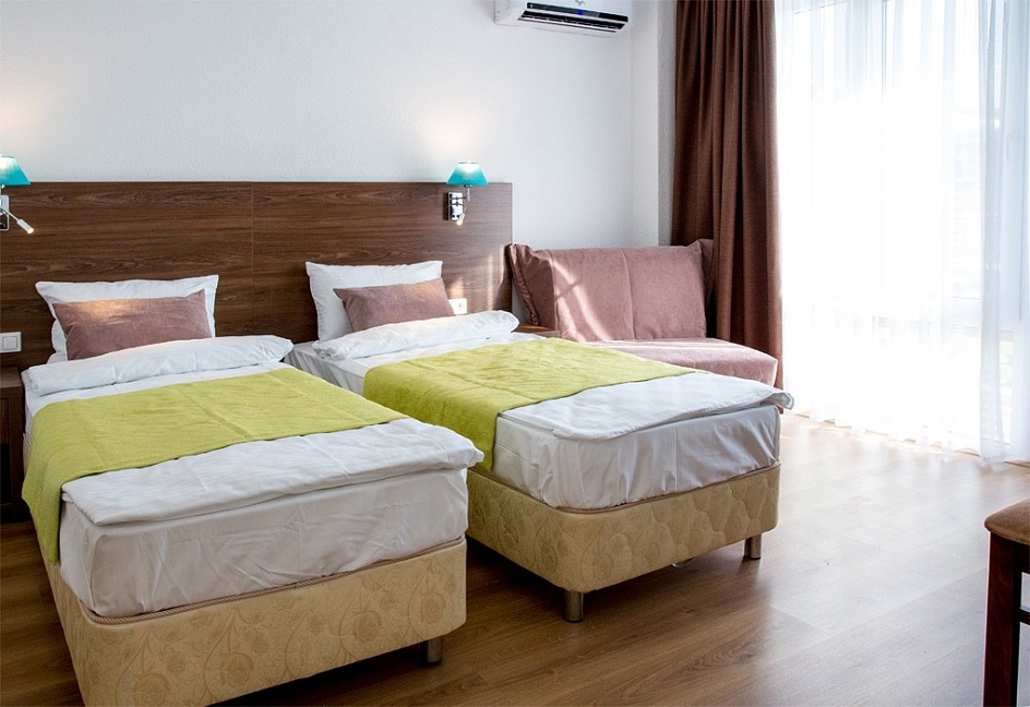 Отдыхали в отеле с 22.08. по 29.08. Отдохнули замечательно, даже не ожидали такого сервиса. Отель небольшой,но очень уютный, окна номера выходили на тихую улочку, спать ничто не мешало. Начитавшись отзывов, боялись очередей в столовой, но все оказалось супер, никаких очередей, на раздаче все очень оперативно, столы и стулья постоянно дезинфицировались, столиков и посуды всегда хватало. Еда очень понравилась, мясо всегда было. Если в обед говядина и свинина, то на ужин как правило курица, но в разных видах. А выпечка заслуживает отдельной похвалы, одни булочки со сливками чего стоят.