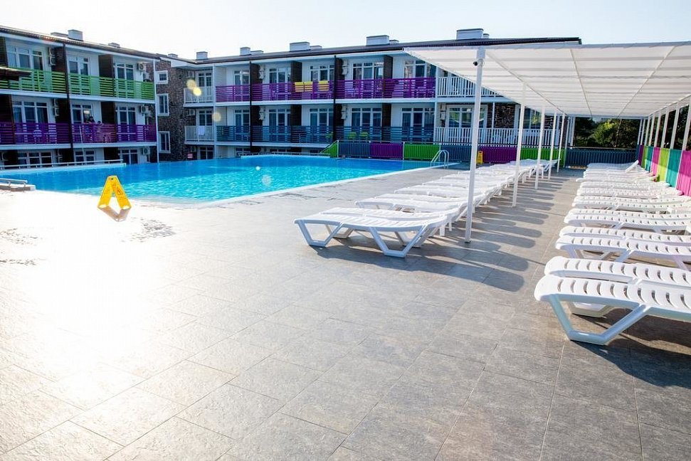 Пляж в 15 минутах неспешной ходьбы, лежаки и полотенца бесплатно ( у нас был полный пансион), мелкий песочек, чисто, теплое море. Чтобы поплавать нужно пройти метров 50-60. На пляже как и в отеле есть огороженная детская площадка. Вообще весь отель заточен для отдыха с маленькими детьми, дошколята и младшие школьники точно остались довольны, даже самокаты выдаются детям и круги для плаванья, да и еде для малышни можно выбрать подходящую. А вот молодежи наверное будет скучновато, хотя можно поехать в Анапу или в Витязево на автобусе, там, говорят, зажигают. Вообщем, после нескольких лет отдыха в Турции, мы были очень приятно удивлены таким уровнем сервиса, большое спасибо всей администрации отела, все работники очень вежливые и отзывчивые