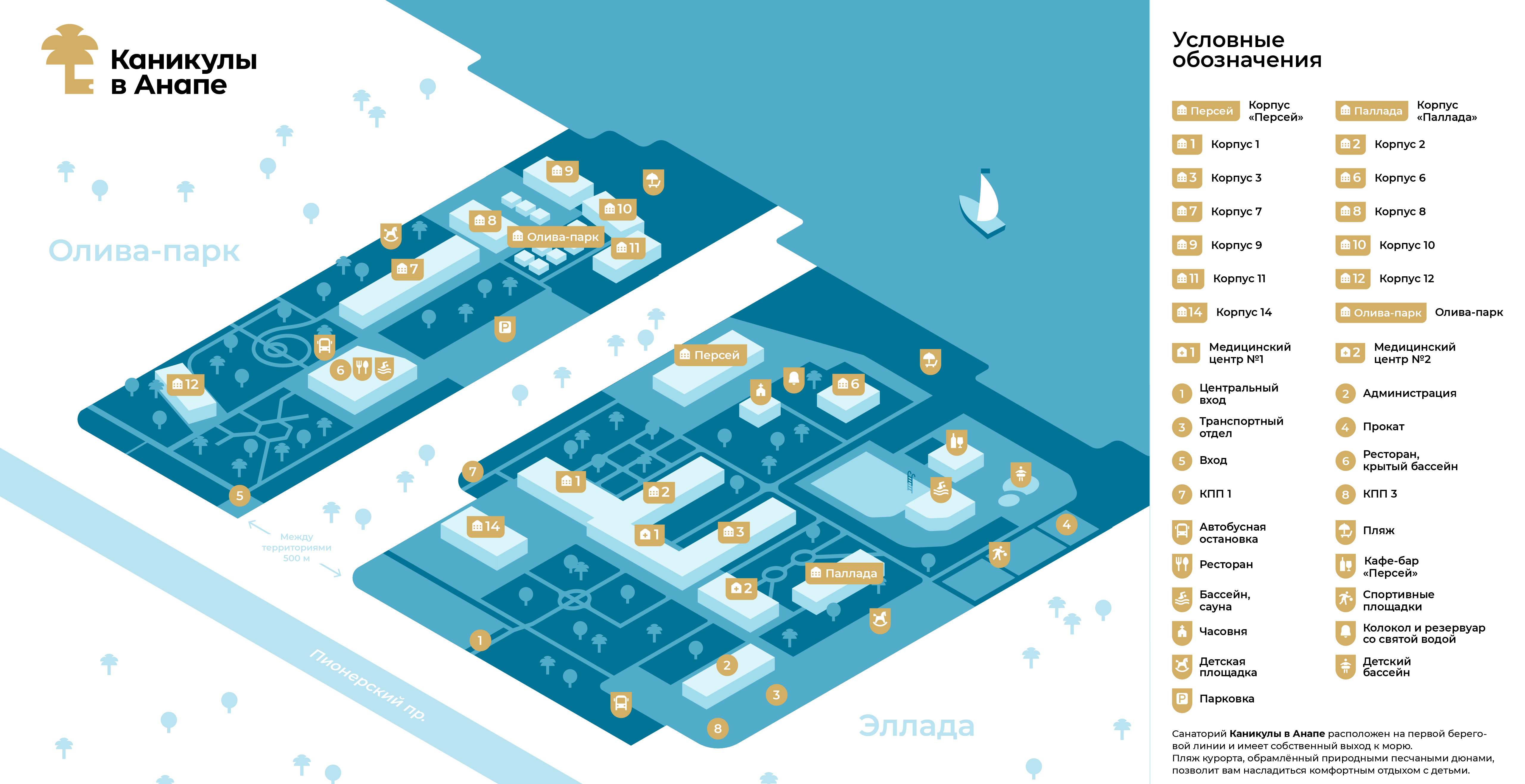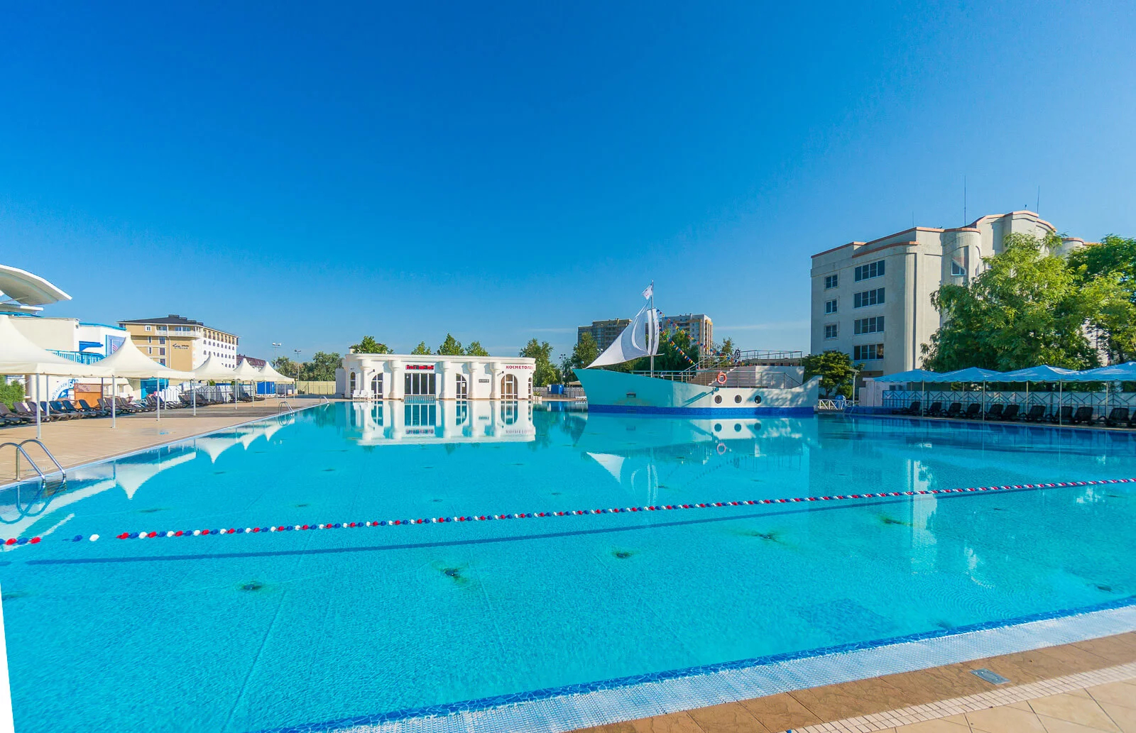 - 1600 кв. м. площадь водного зеркала бассейна с морской водой