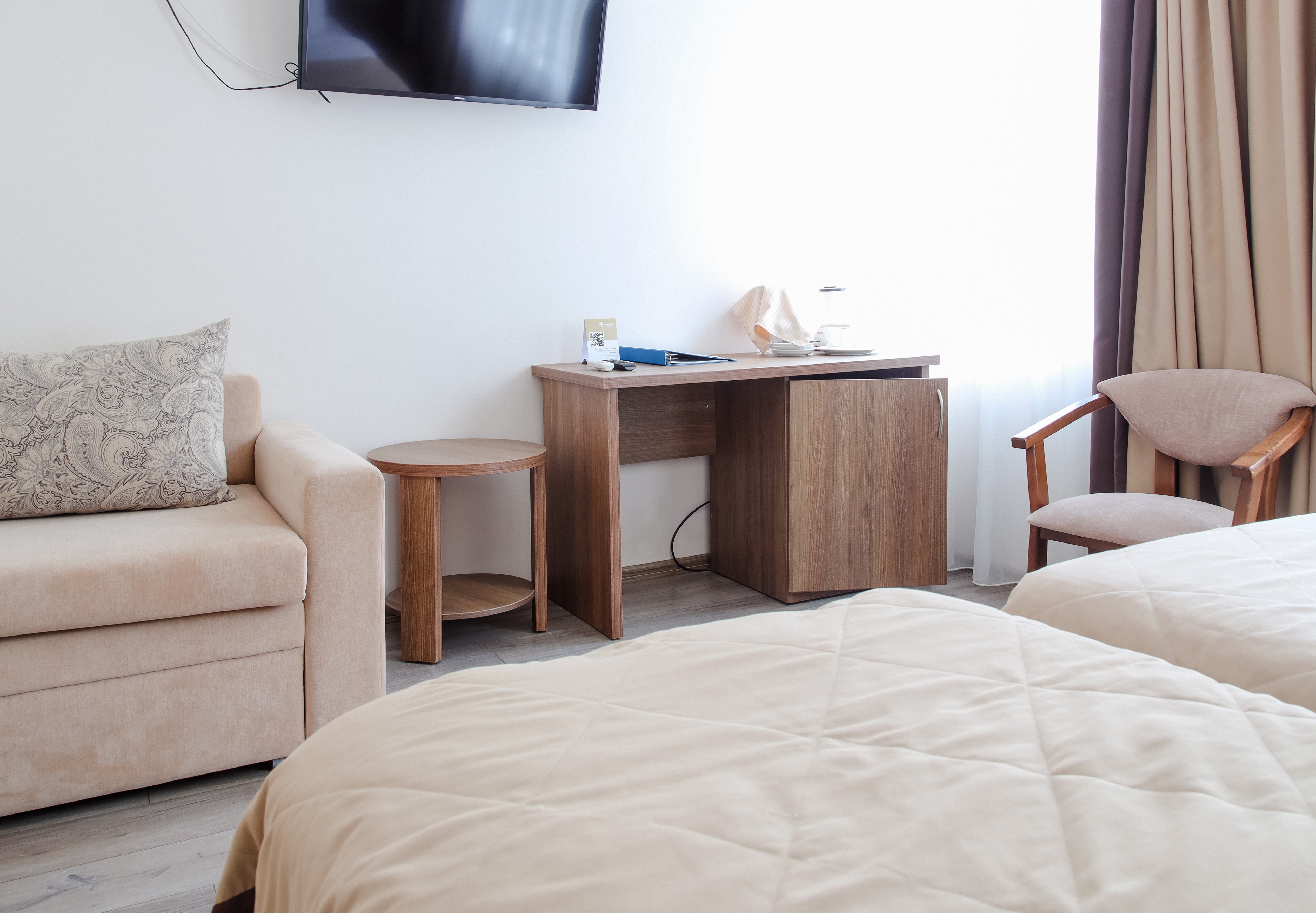 Номерной фонд санатория «Каникулы в Анапе ФНС России» представлен комфортными номерами различных категорий. Все номера оборудованы необходимыми удобствами для полноценного отдыха. Гостям предлагается сбалансированное питание, разработанное с учётом диетических рекомендаций и потребностей организма.