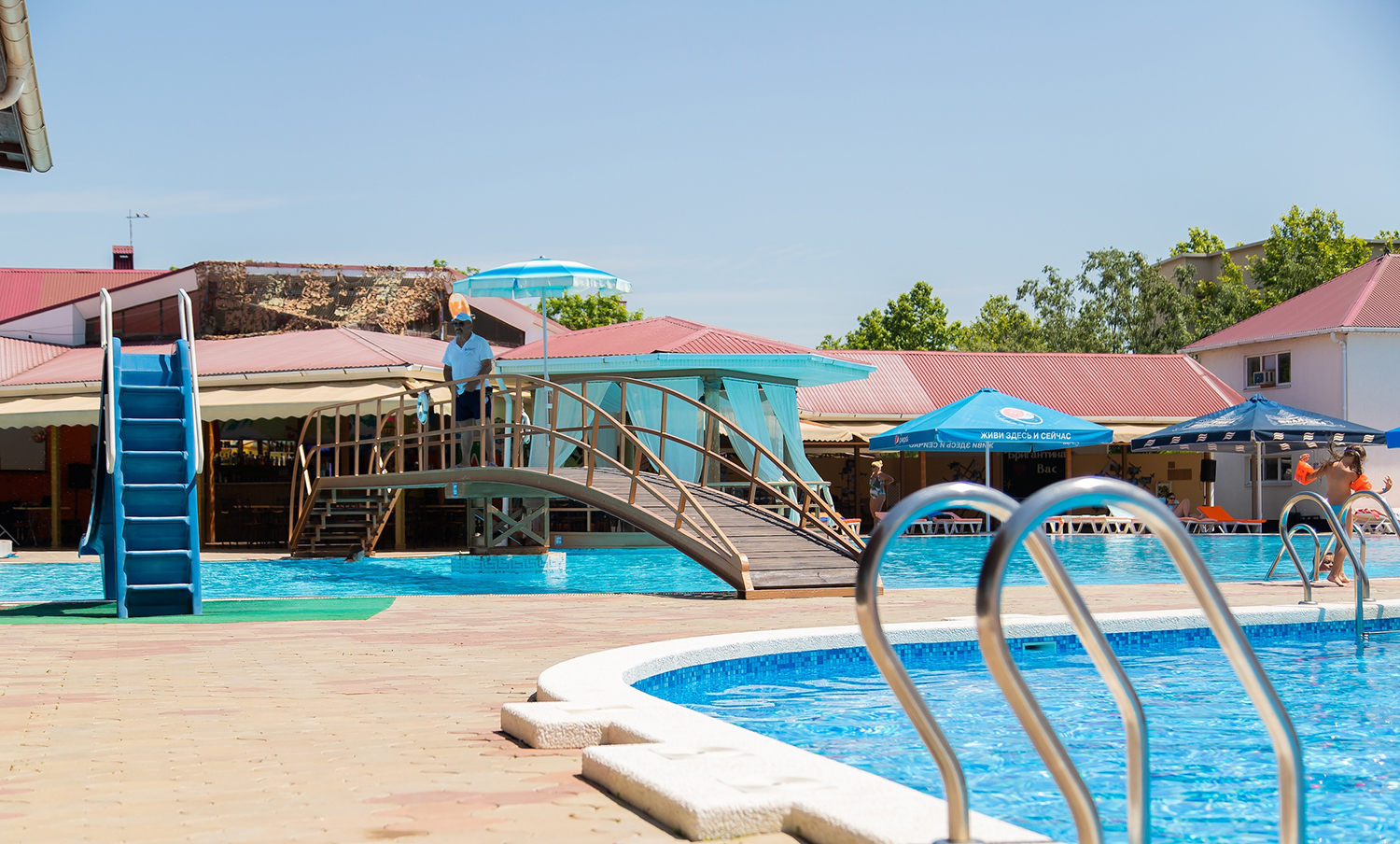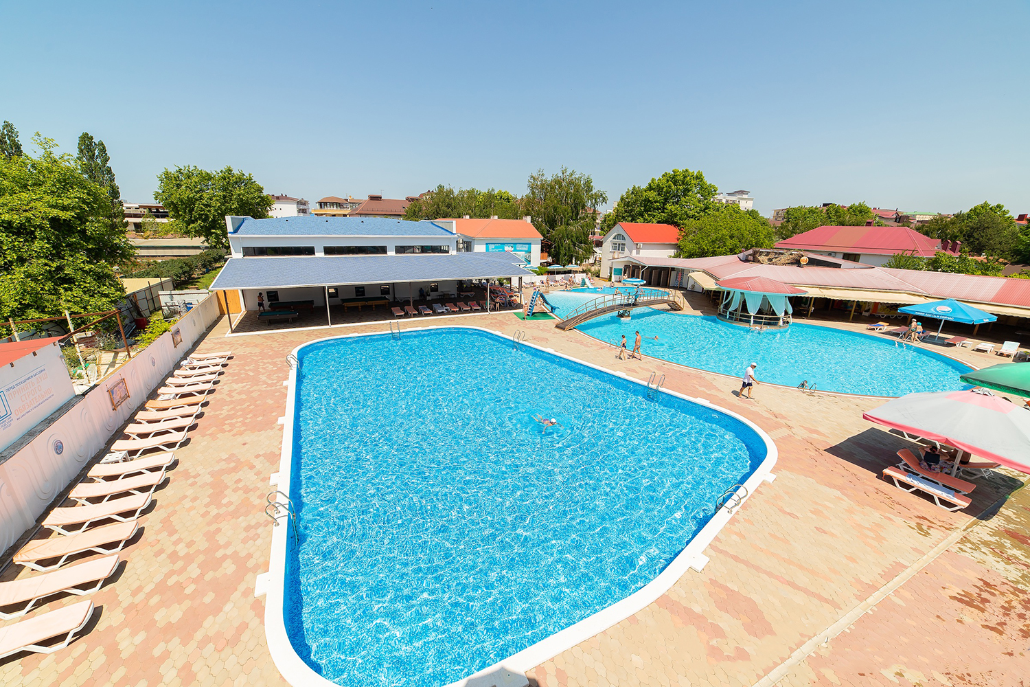 комплекс бассейнов: комплекс из 4 бассейнов с водными горками, бассейн с водными горками 25х13, бассейн 30х17 и 22х13 без подогрева.
