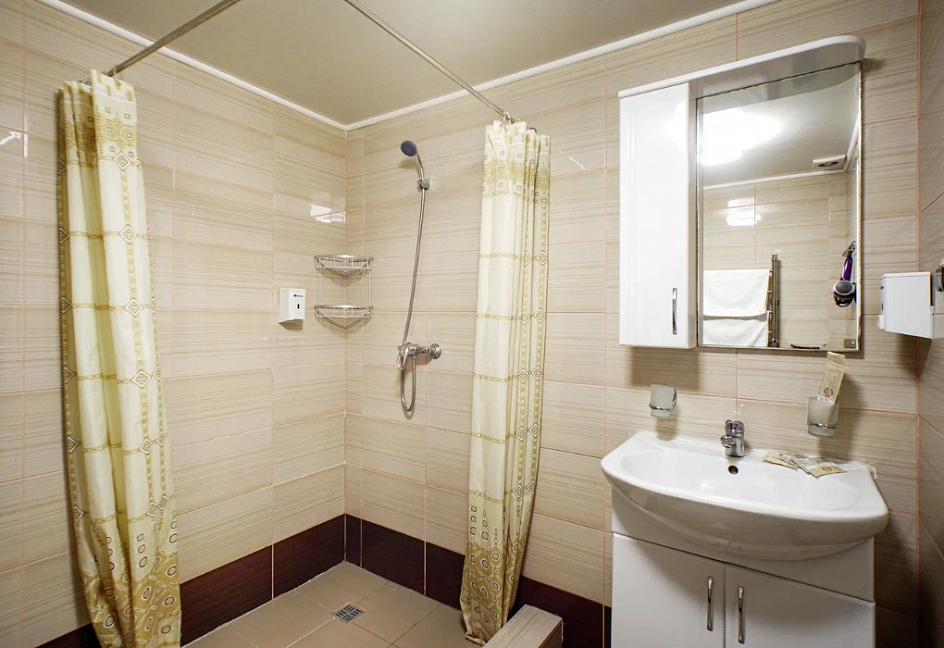 с душем или ванной, туалетные принадлежности