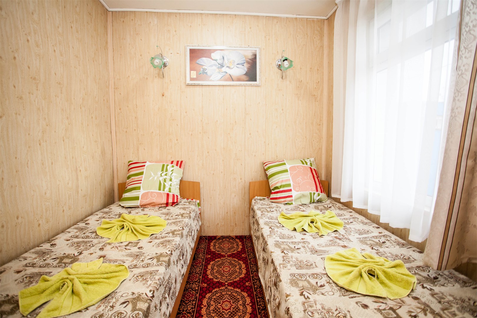 Проживали в пансионате с 01 по 11 июля. Мне понравилось,тихо спокойно. Были некоторые минусы в работе столовой плохая подача блюд холодные пельмени один раз принесли блинчики с начинкой покупные даже толком не разморозили начинка ледяная была ,также плохая уборка столов ведь можно было самим убрать за собой посуду как это делается в других столовых .