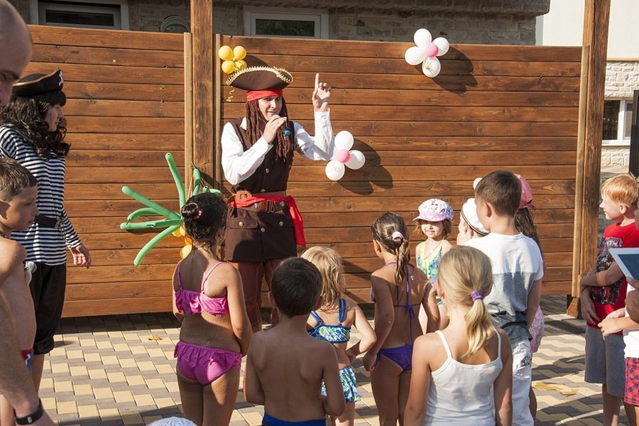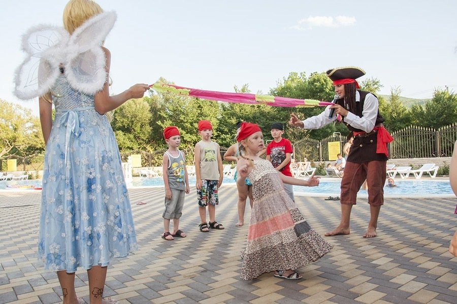 Для наших маленьких гостей мы предусмотрели неглубокий детский бассейн, лишенный острых углов и оборудованный сплеш-аттракционом и водной горкой. Вода пресная, размер 8х5, шезлонги.