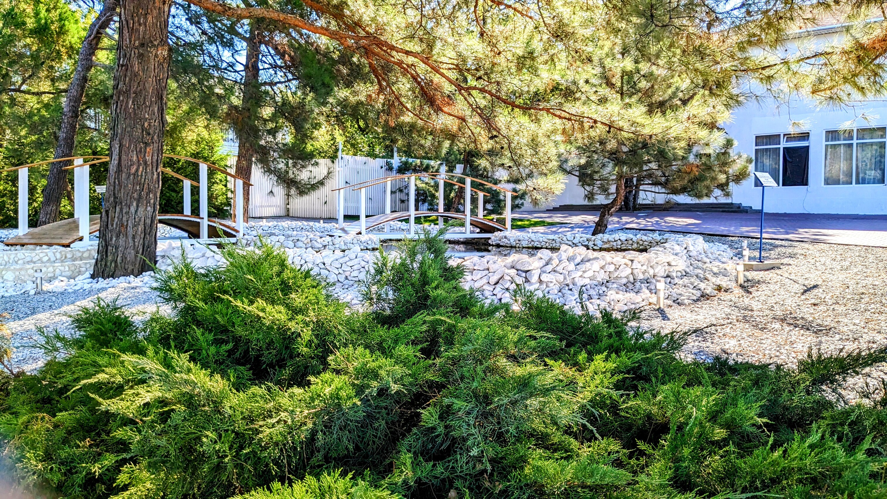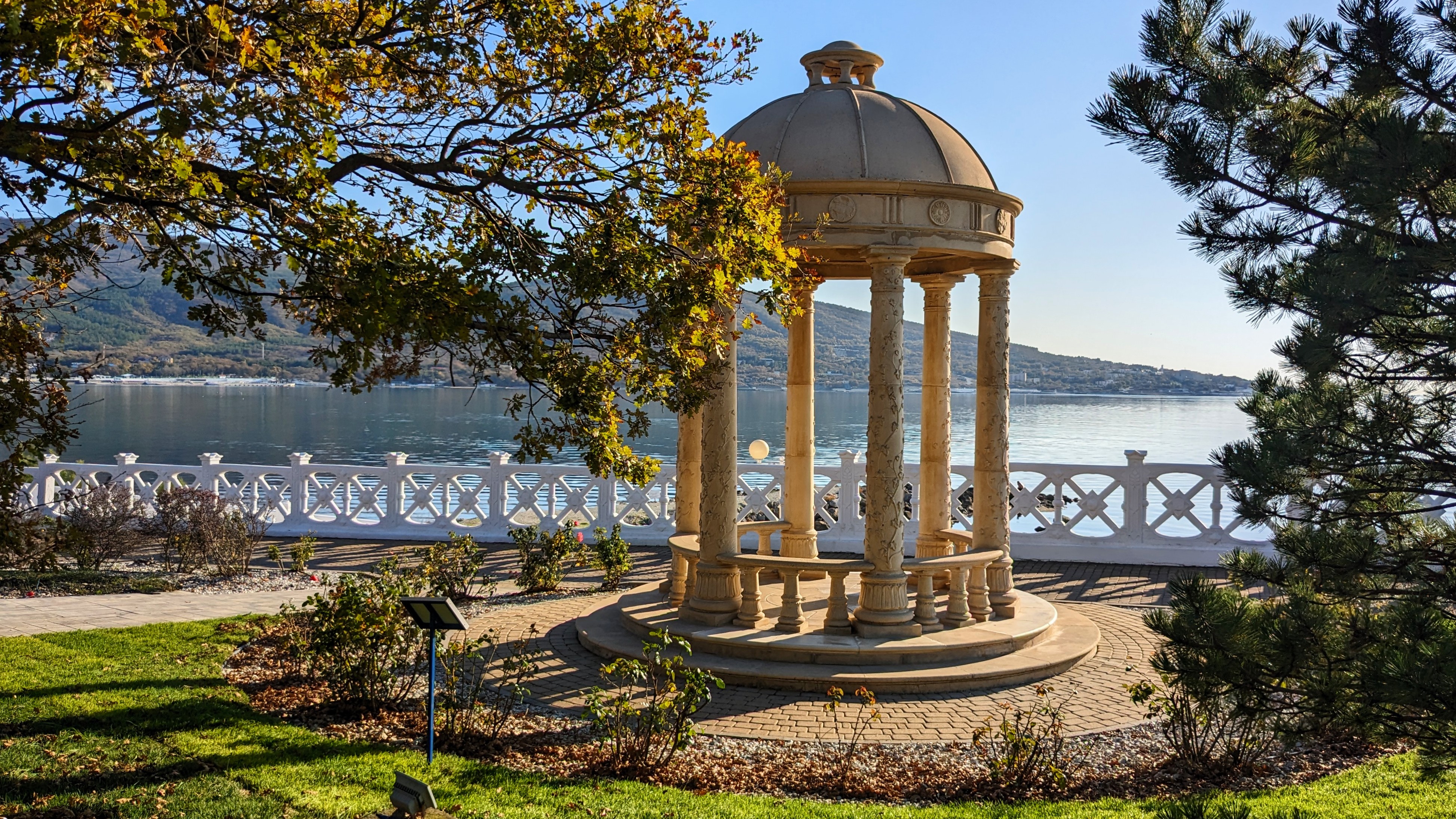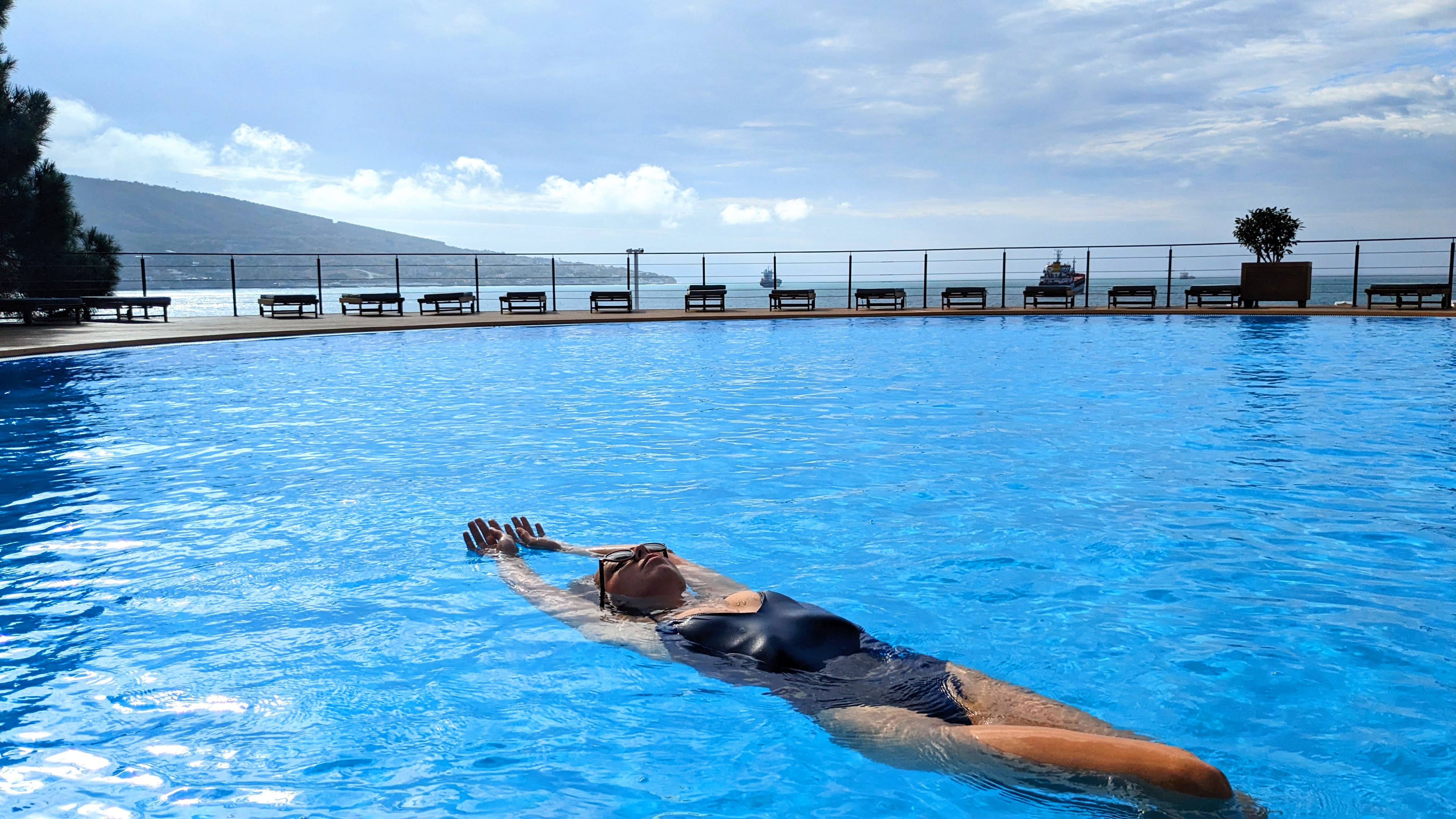Мы отдыхали в этом пансионате всего несколько дней, так сложились обстоятельства. Очень понравилась территория: всё чисто и ухоженно, много цветов, красивая Набережная, большая зона пляжа. Территория охраняется, для посторонних вход закрыт.