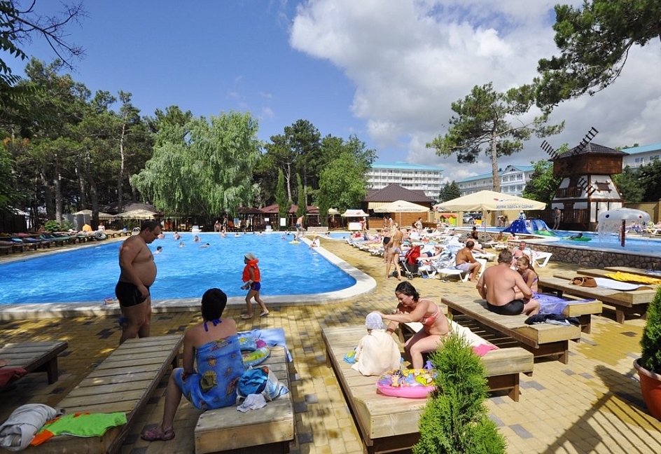 - располагается в шаговой доступности от аквапарка «Золотая бухта»